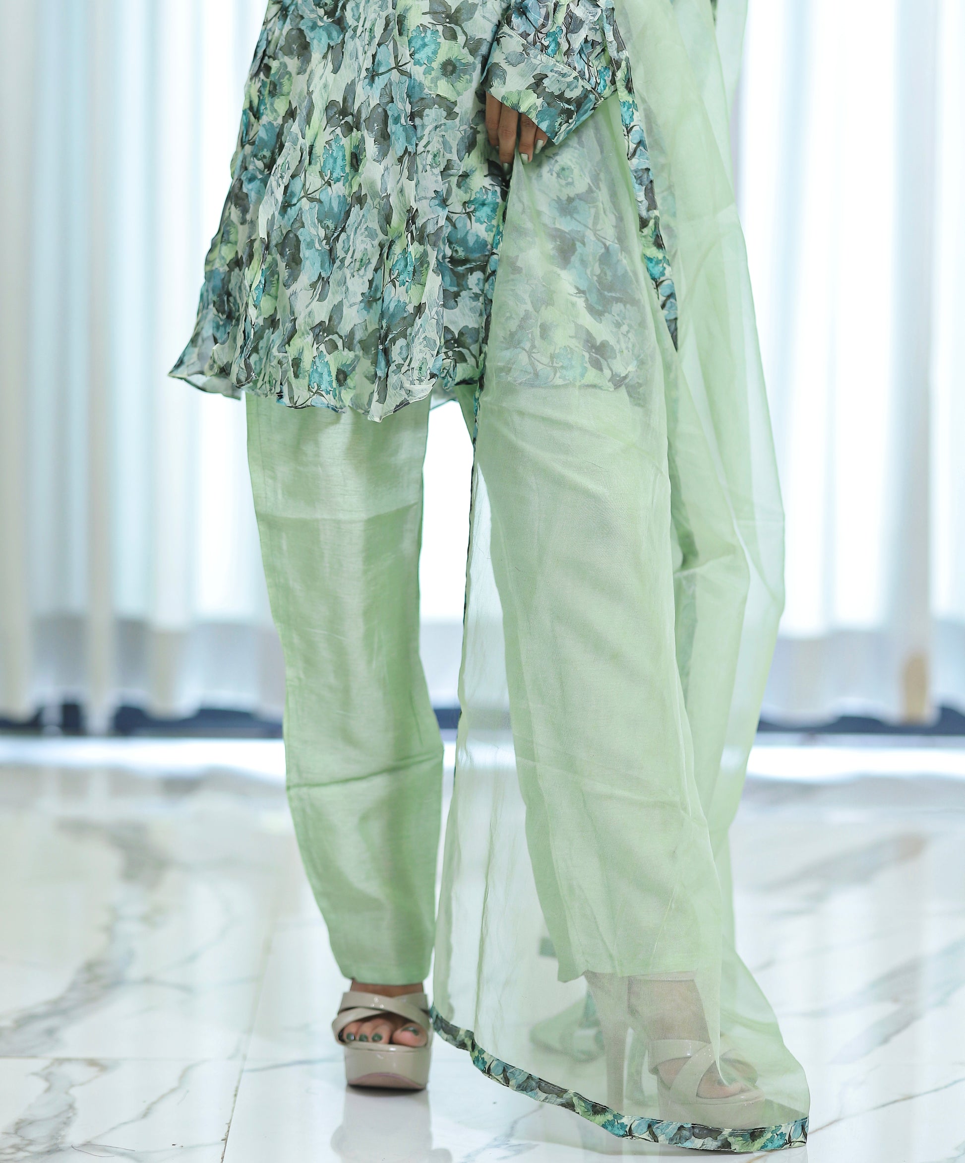 Elevate your festive wardrobe with this Partywear Pista Cord Set, featuring a finely crafted cord fabric that offers both comfort and style. The set includes a matching dupatta, enhancing the ensemble's elegance and making it perfect for special occasions. Its subtle pista hue adds a refreshing touch, while the breathable material ensures all-day wearability. Ideal for those seeking a sophisticated yet comfortable outfit for celebrations.