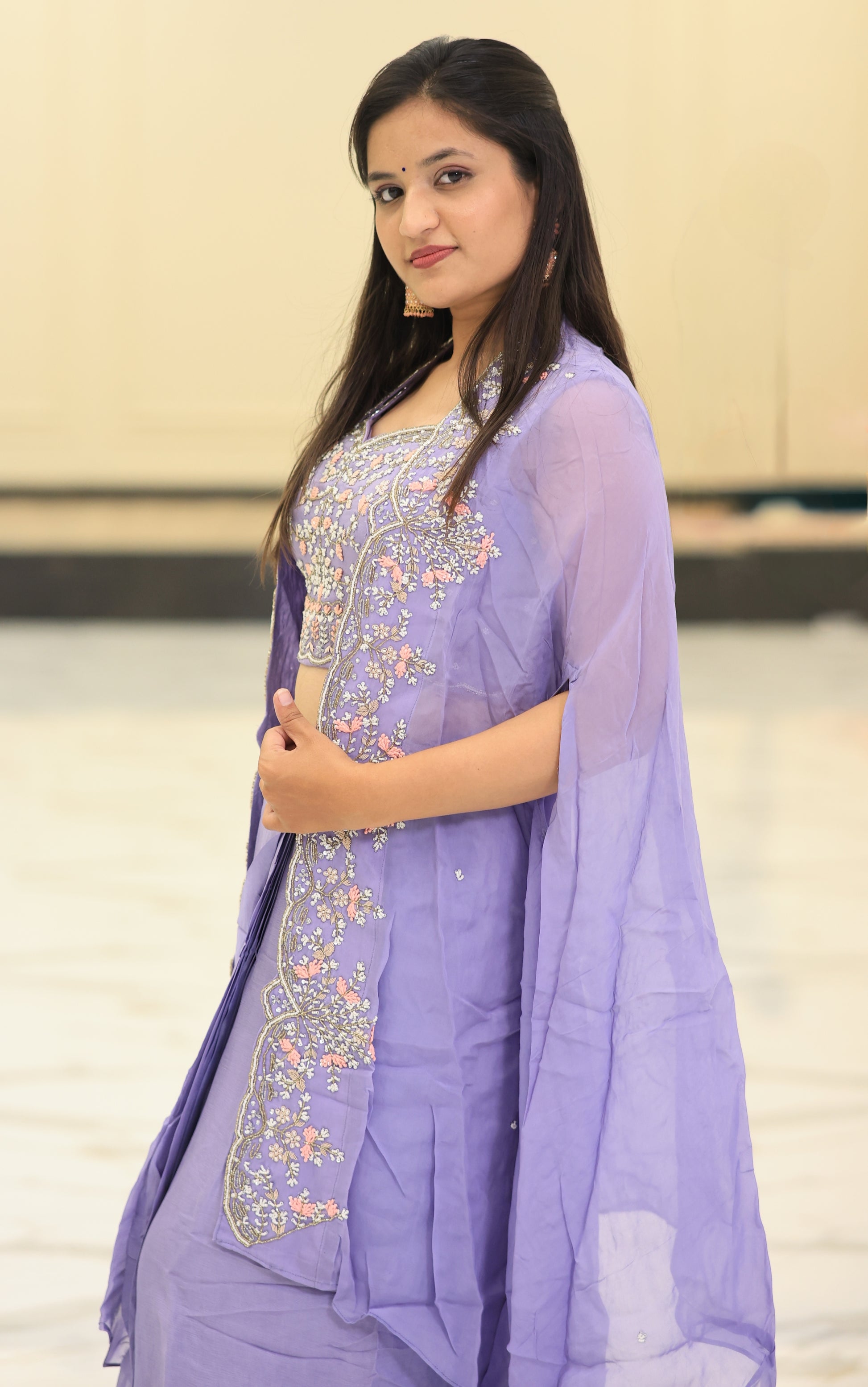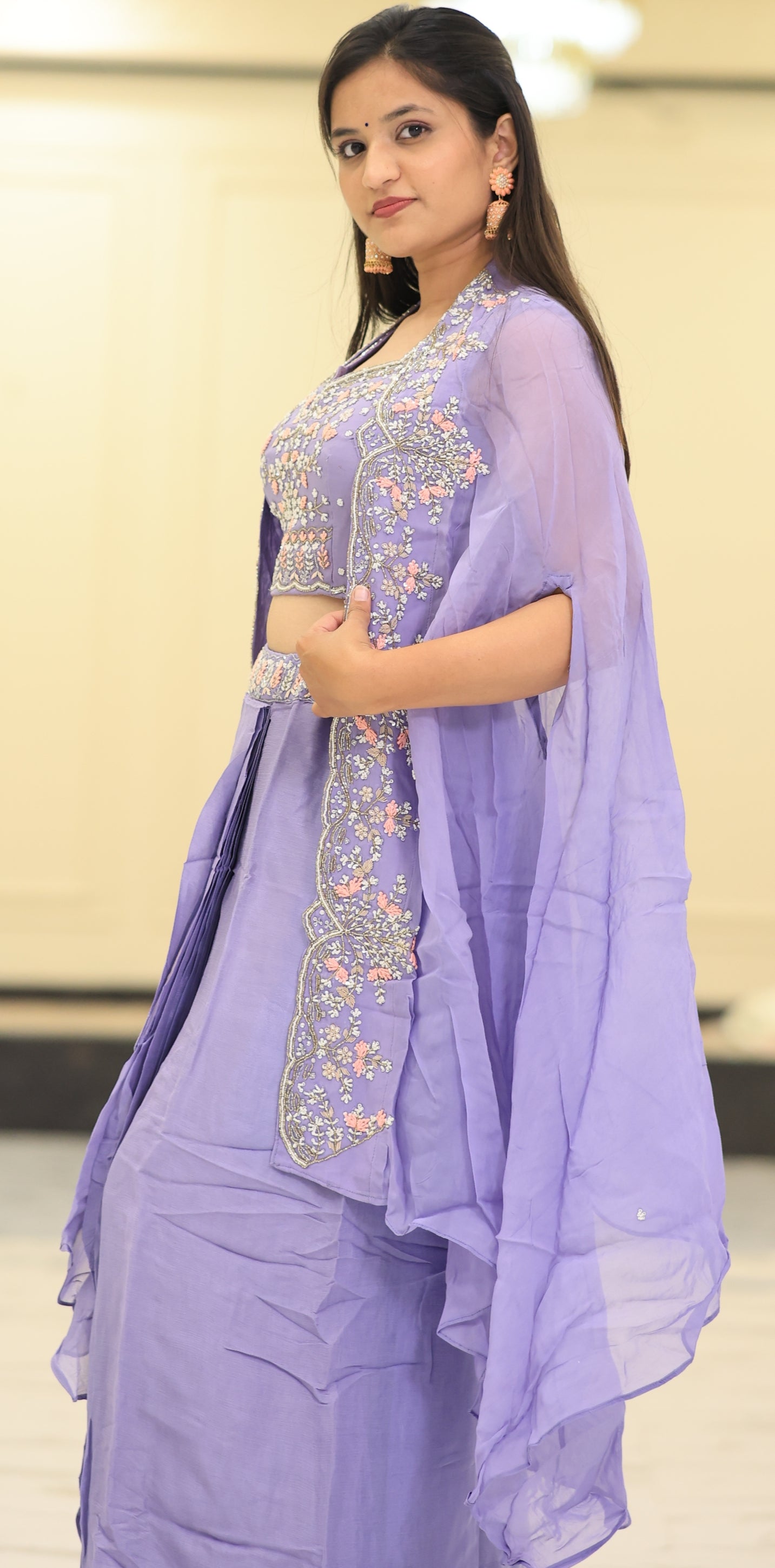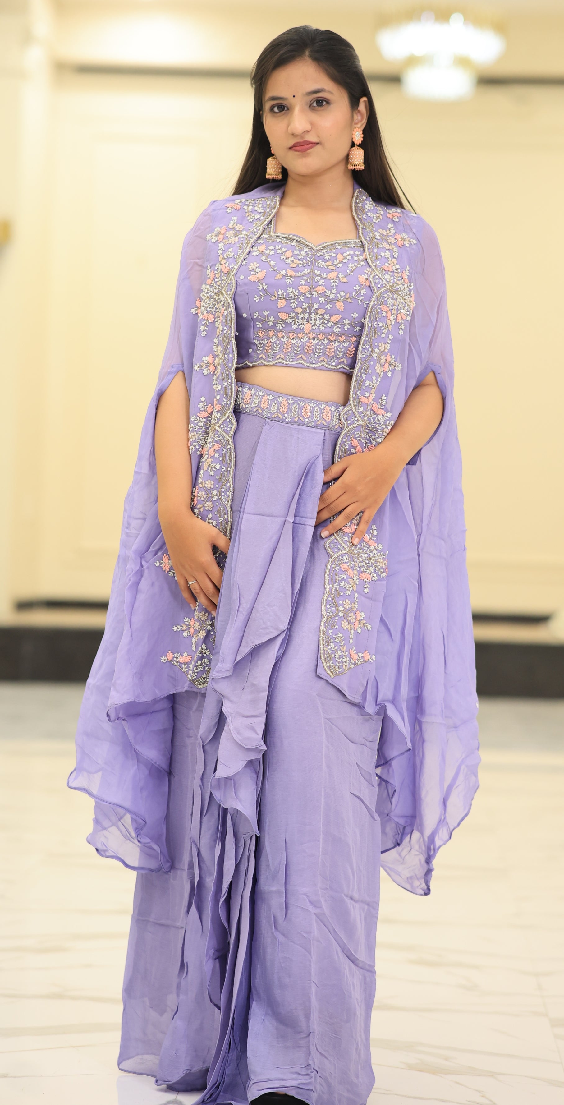 Elevate your party wardrobe with this lavender crop top, expertly designed for a chic and contemporary look. Crafted to offer a flattering fit, it pairs effortlessly with skirts or high-waisted pants, making it a versatile choice for festive occasions. The soft lavender hue adds a subtle yet sophisticated touch, perfect for standing out with understated elegance.