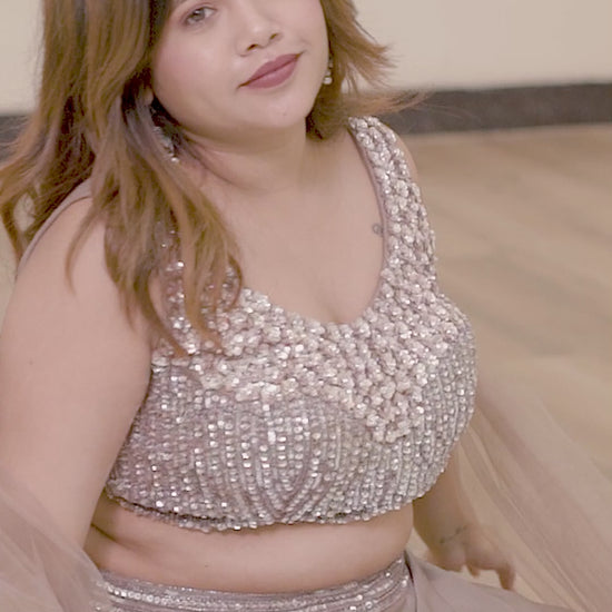 Elevate your party wardrobe with this copper-colored crop top, expertly designed to bring a touch of sophistication and shine. Its rich metallic hue catches the light beautifully, making it perfect for evening events. The tailored fit ensures comfort while accentuating your silhouette, offering a refined yet festive look ideal for stylish celebrations.