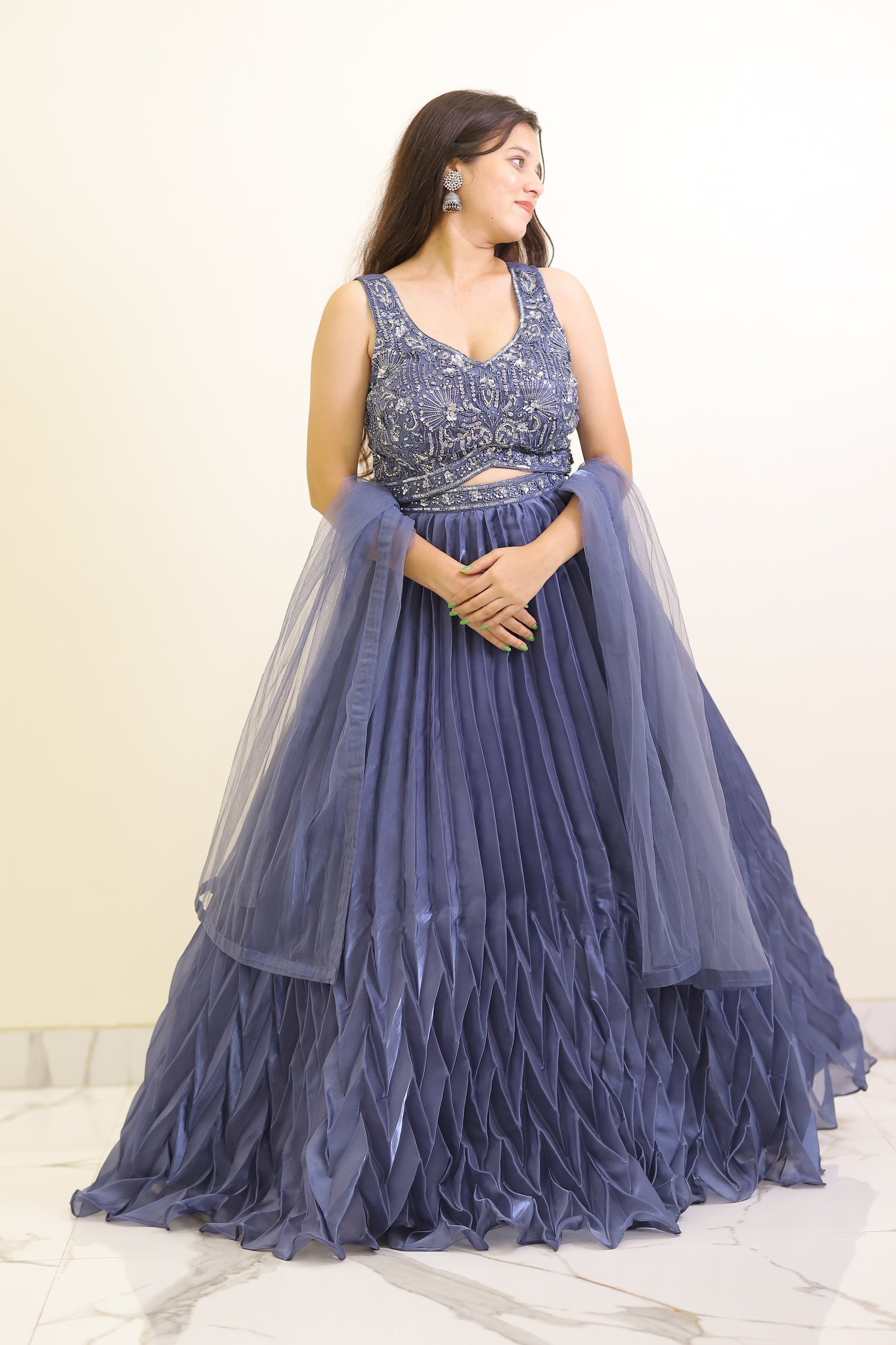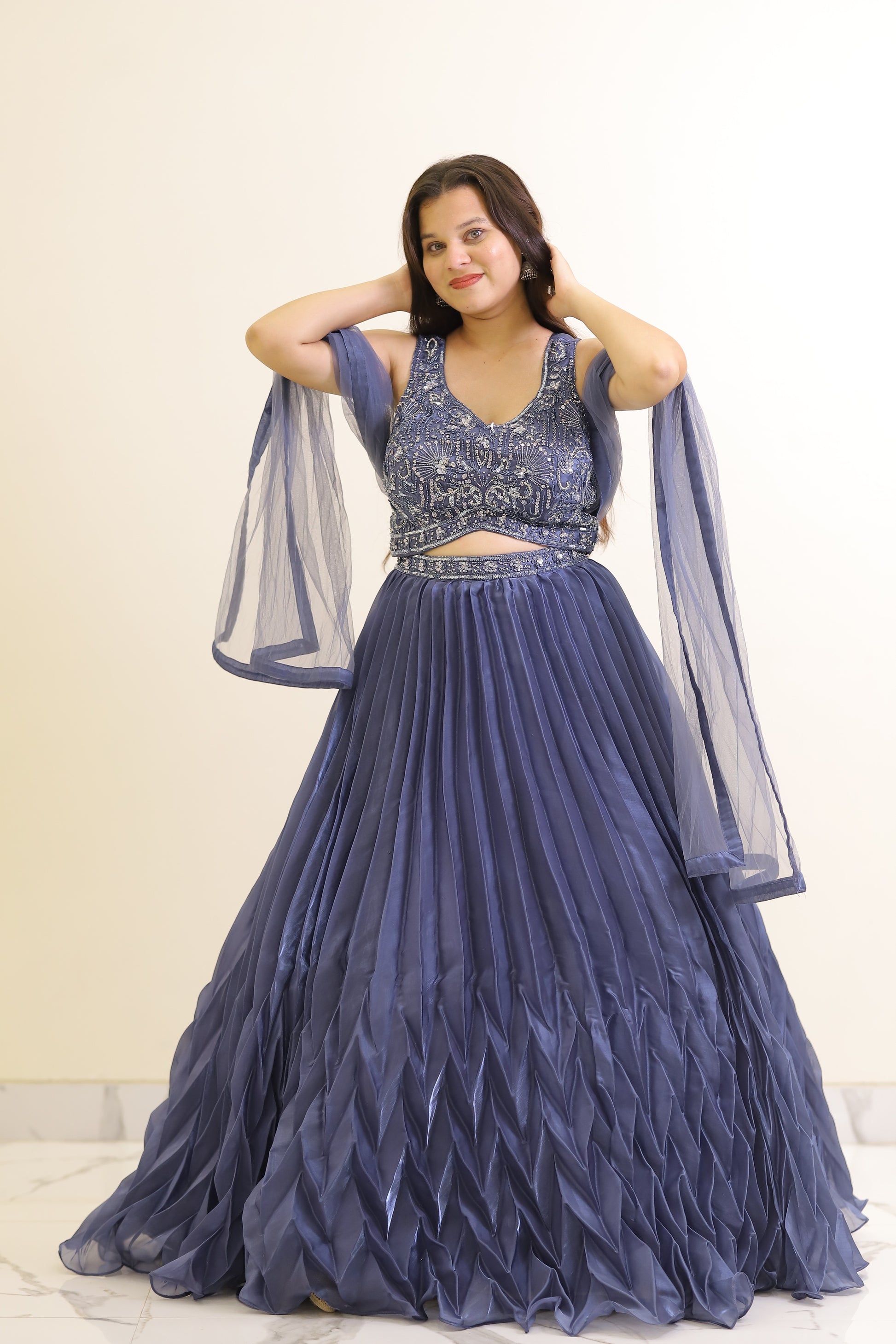 This Teel color partywear crop top combines vibrant style with a tailored fit, perfect for festive occasions. Its contemporary cut accentuates the silhouette while offering comfort for extended wear. Ideal for pairing with high-waisted skirts or pants, it adds a sophisticated yet playful touch to your party wardrobe.