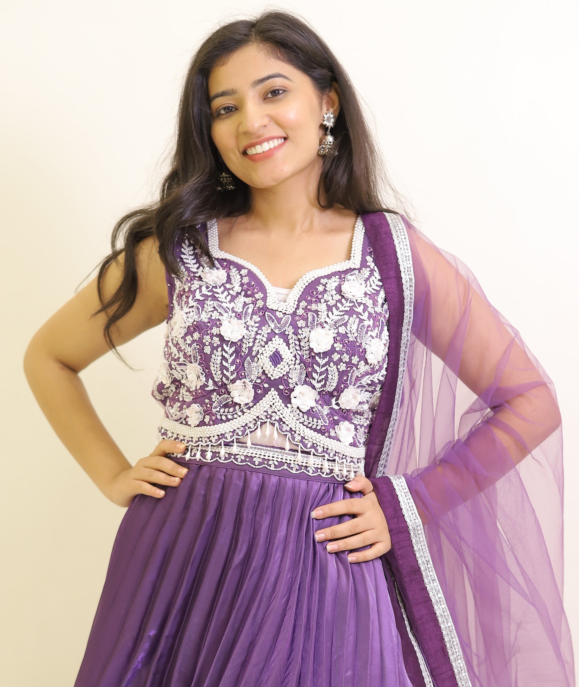 Elevate your party look with this purple crop top, designed for style and comfort. Its vibrant color and tailored fit make it ideal for festive occasions, while the breathable fabric ensures ease of movement throughout the event. Perfect for pairing with high-waisted skirts or trousers, this crop top offers a chic, contemporary silhouette suited for confident, fashion-forward wearers.