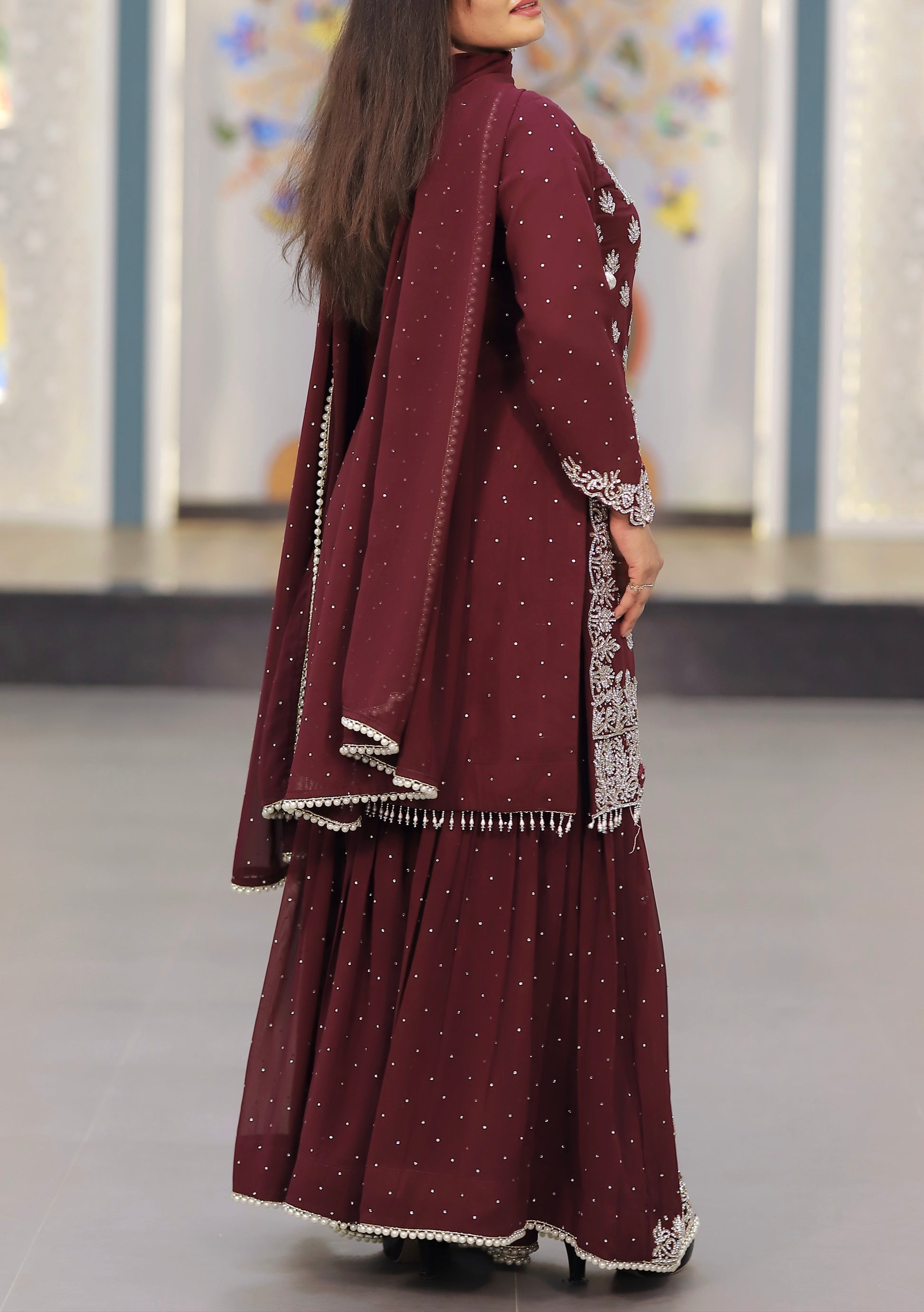 Elevate your festive wardrobe with this Partywear Wine Garara Set, expertly crafted for a perfect blend of tradition and style. The rich wine hue adds a regal touch, while the flowing garara pants offer comfort and elegance. Ideal for celebrations, this set ensures you stand out with its sophisticated design and flattering silhouette. Perfect for those who appreciate refined ethnic wear with a contemporary edge.