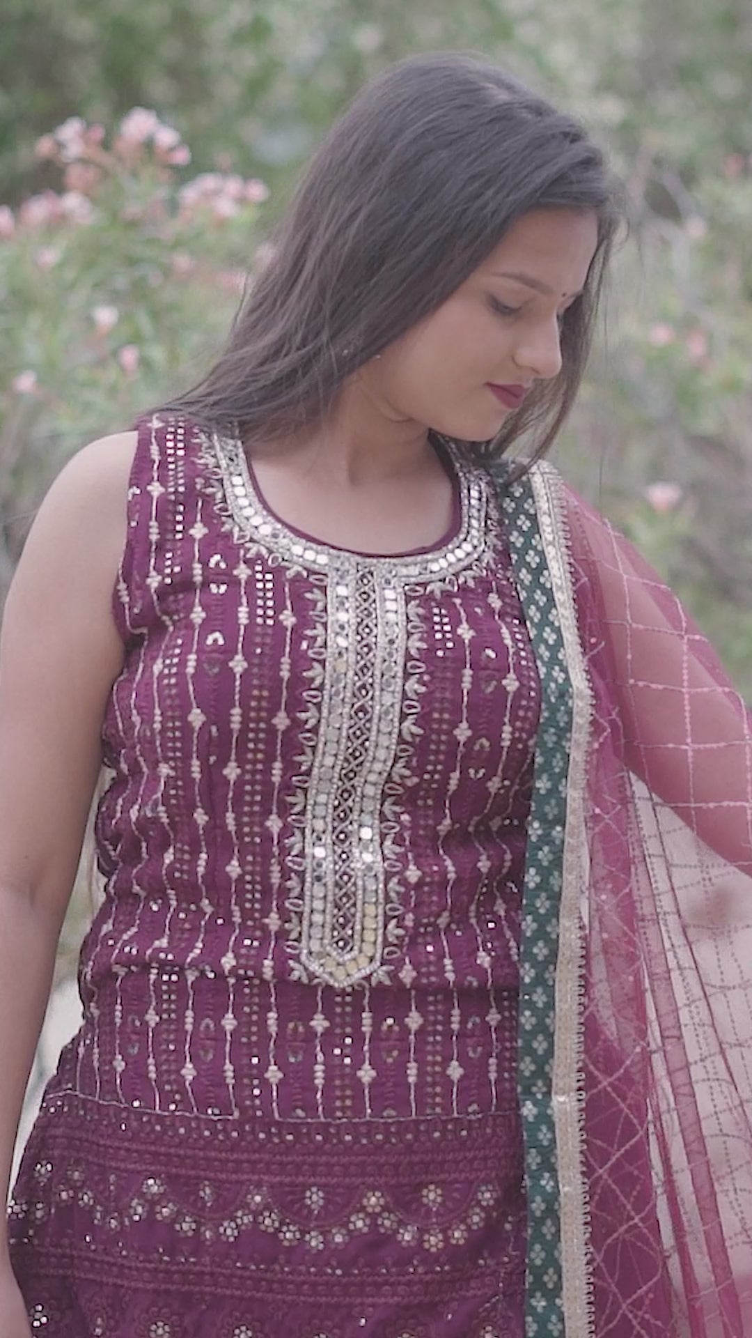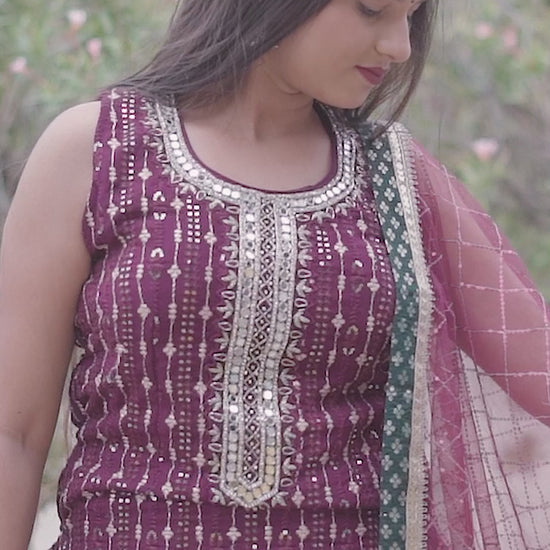 Elevate your festive wardrobe with this Partywear Wine Garara Set, expertly crafted for a perfect blend of tradition and style. The rich wine hue adds a regal touch, while the flowing garara pants offer comfort and elegance. Ideal for celebrations, this set ensures you stand out with its sophisticated design and flattering silhouette. Perfect for those who appreciate refined ethnic wear with a contemporary edge.