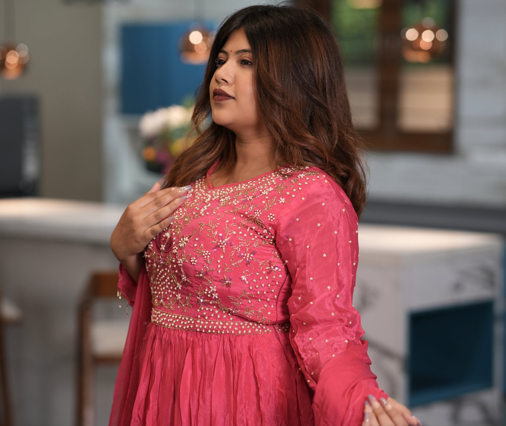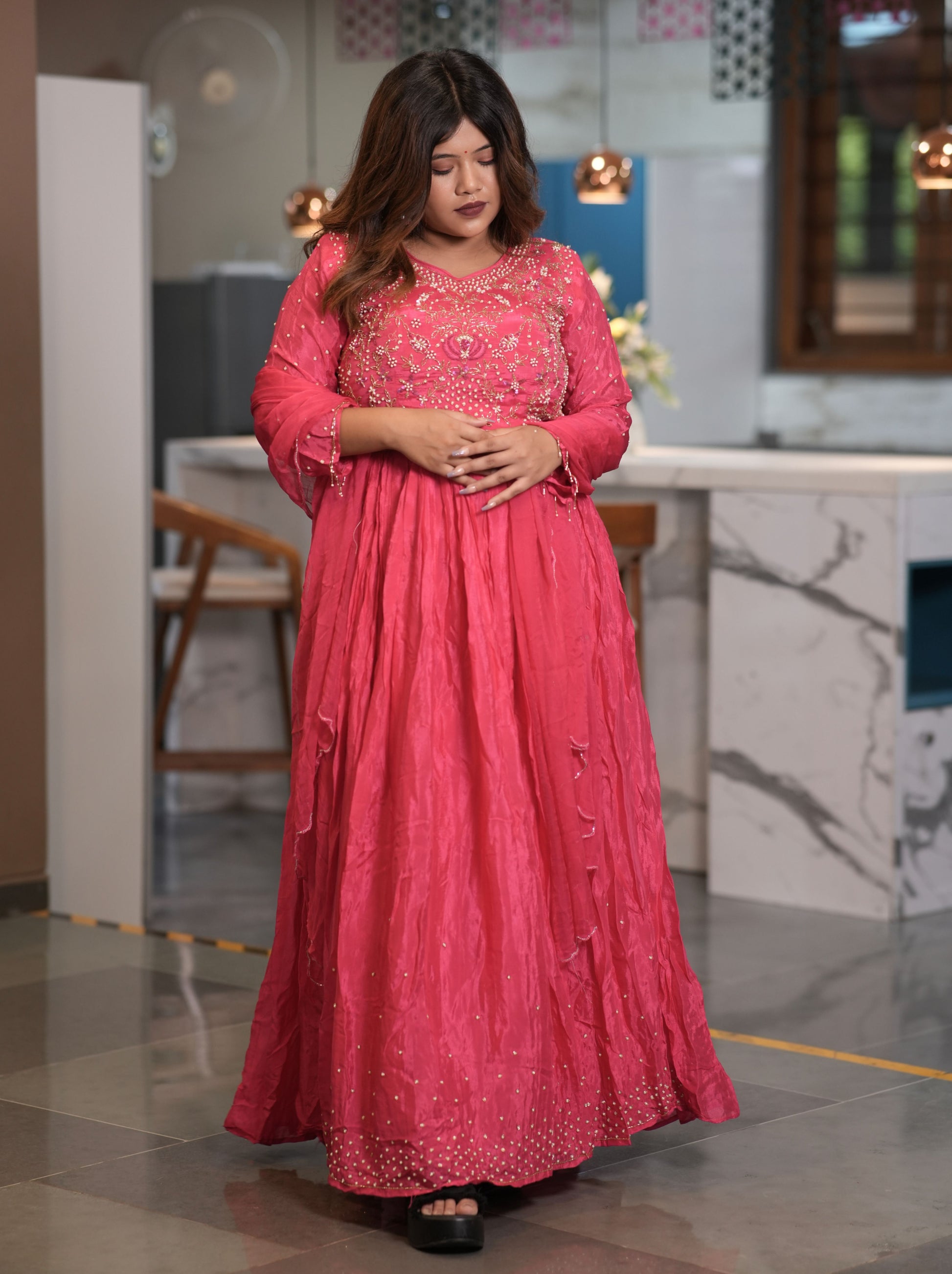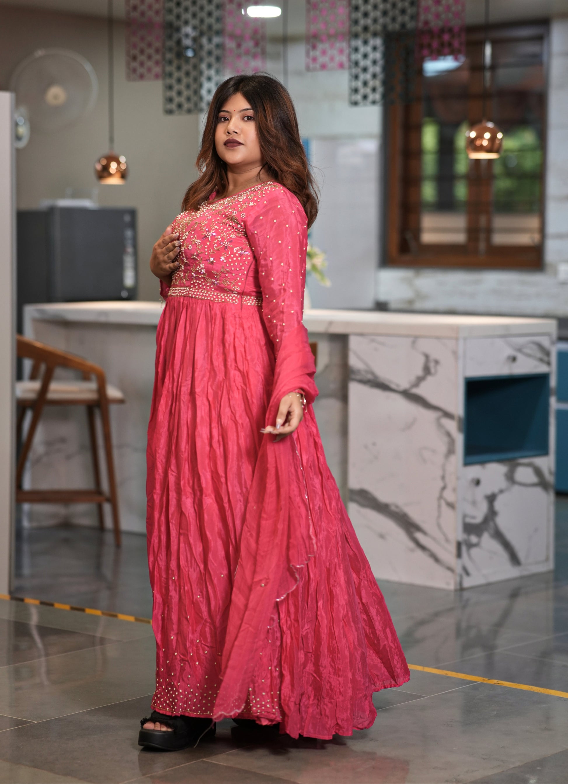 This elegant long gown in a rich Rani color offers a sophisticated silhouette perfect for formal occasions. Crafted to provide a flattering fit, it combines timeless style with vibrant hue, enhancing your presence at any event. Ideal for those seeking a blend of classic design and bold color, this gown ensures both comfort and confidence throughout wear.
