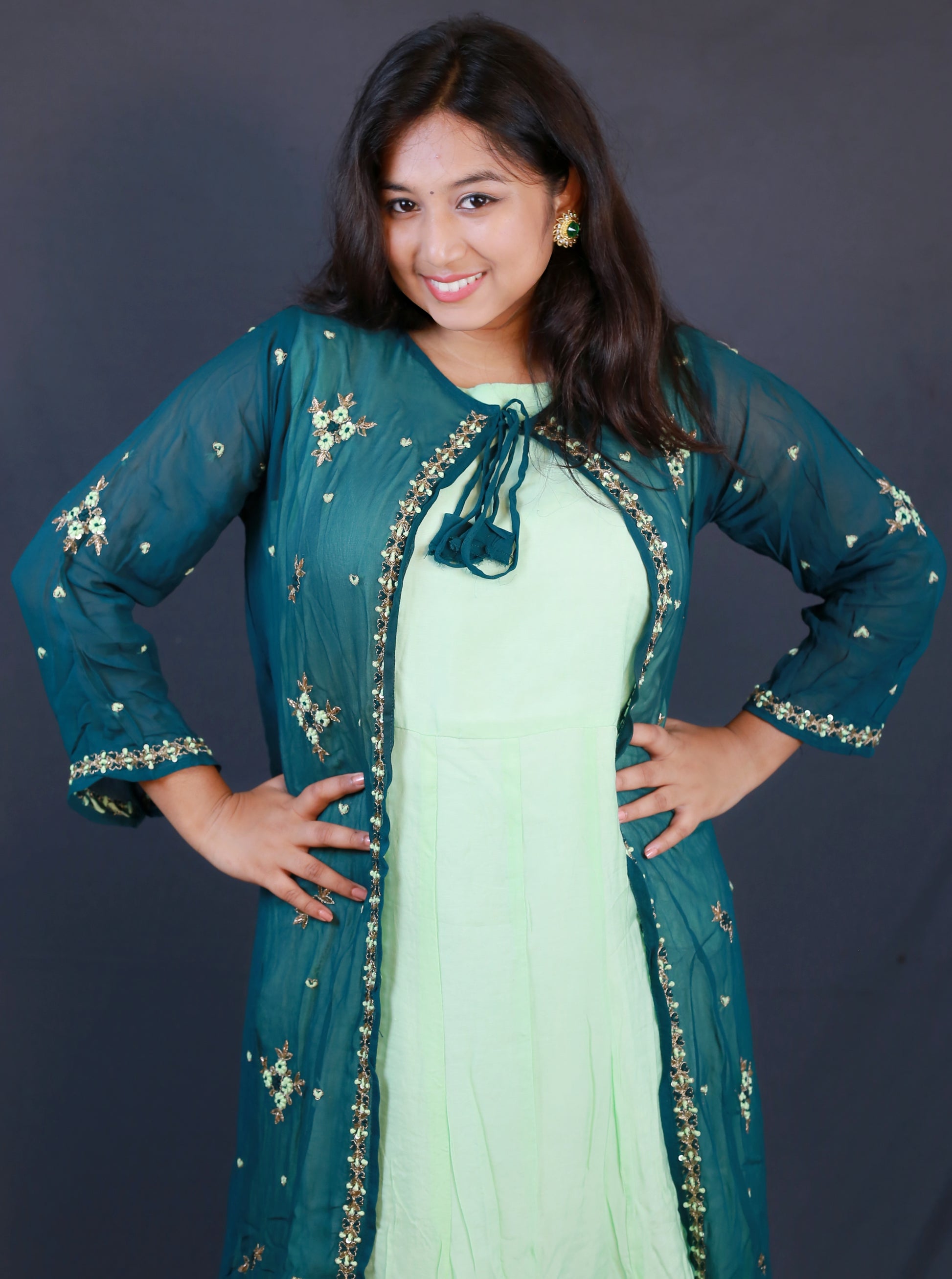 This pistachio-colored long gown features a graceful silhouette that blends understated elegance with contemporary style. Designed for a comfortable fit, it offers a refined look suitable for formal events and special occasions. Its soft hue and flowing fabric create a sophisticated presence, making it a versatile piece that enhances your wardrobe with subtle charm.
