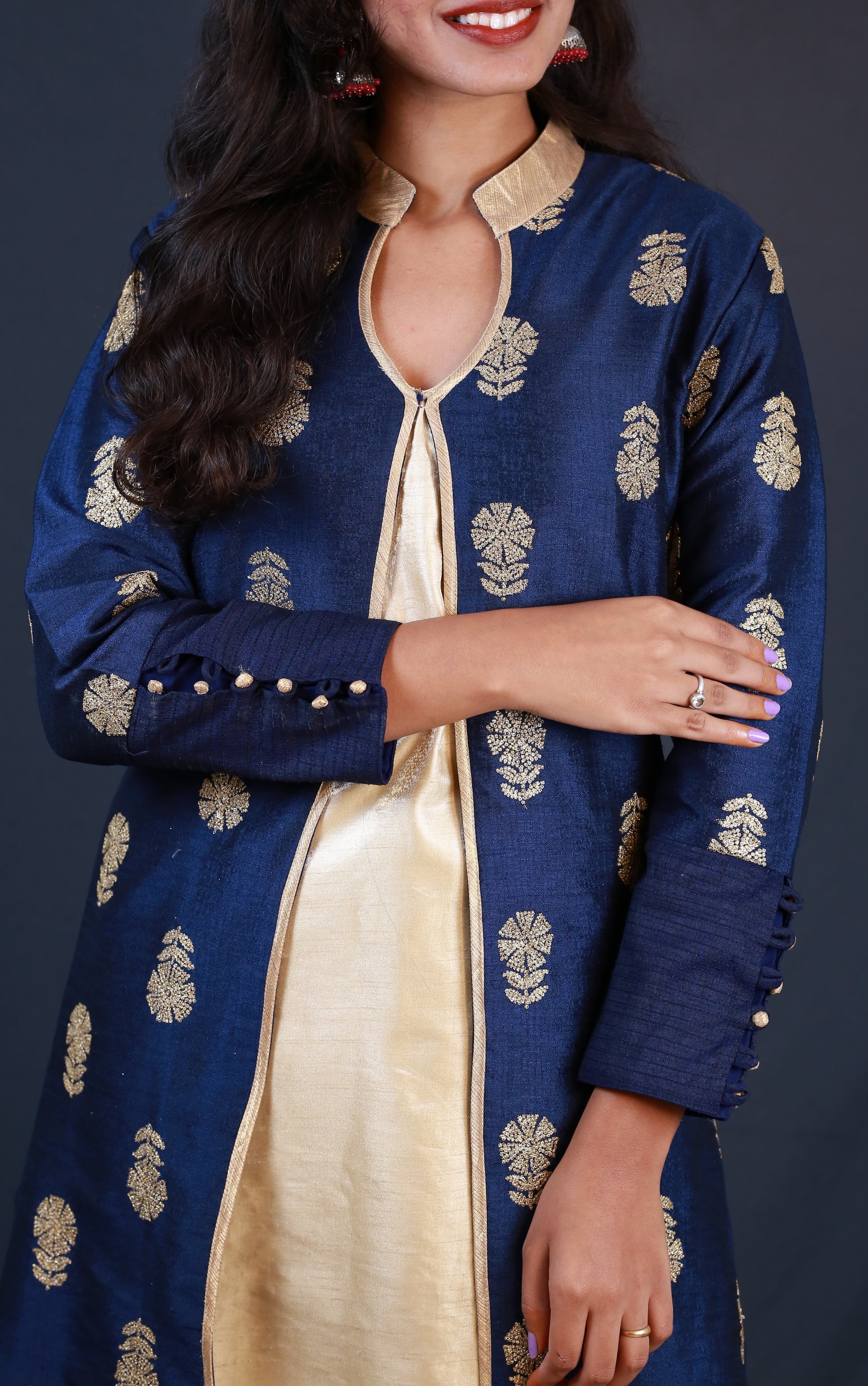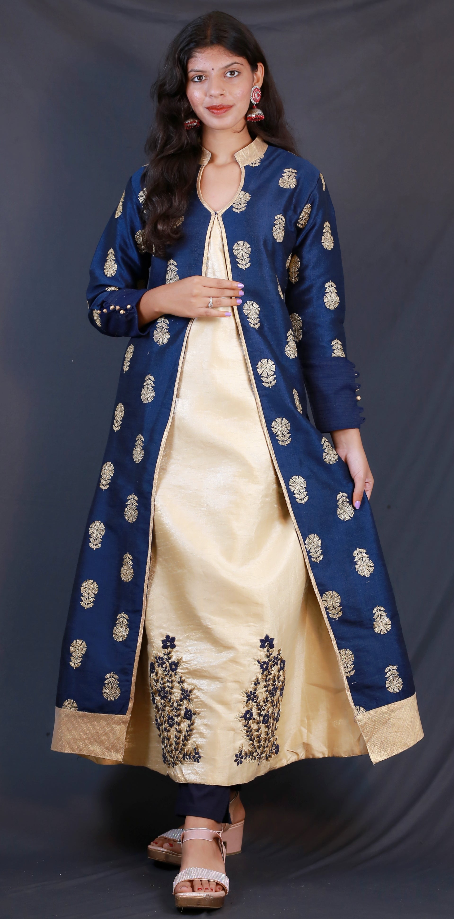 Experience elegance with this navy blue silk gown, crafted to provide a smooth, luxurious feel and a flattering fit. Its rich color and soft texture make it ideal for formal occasions, offering both comfort and sophistication. Perfect for those seeking timeless style with expert attention to fabric quality and design.