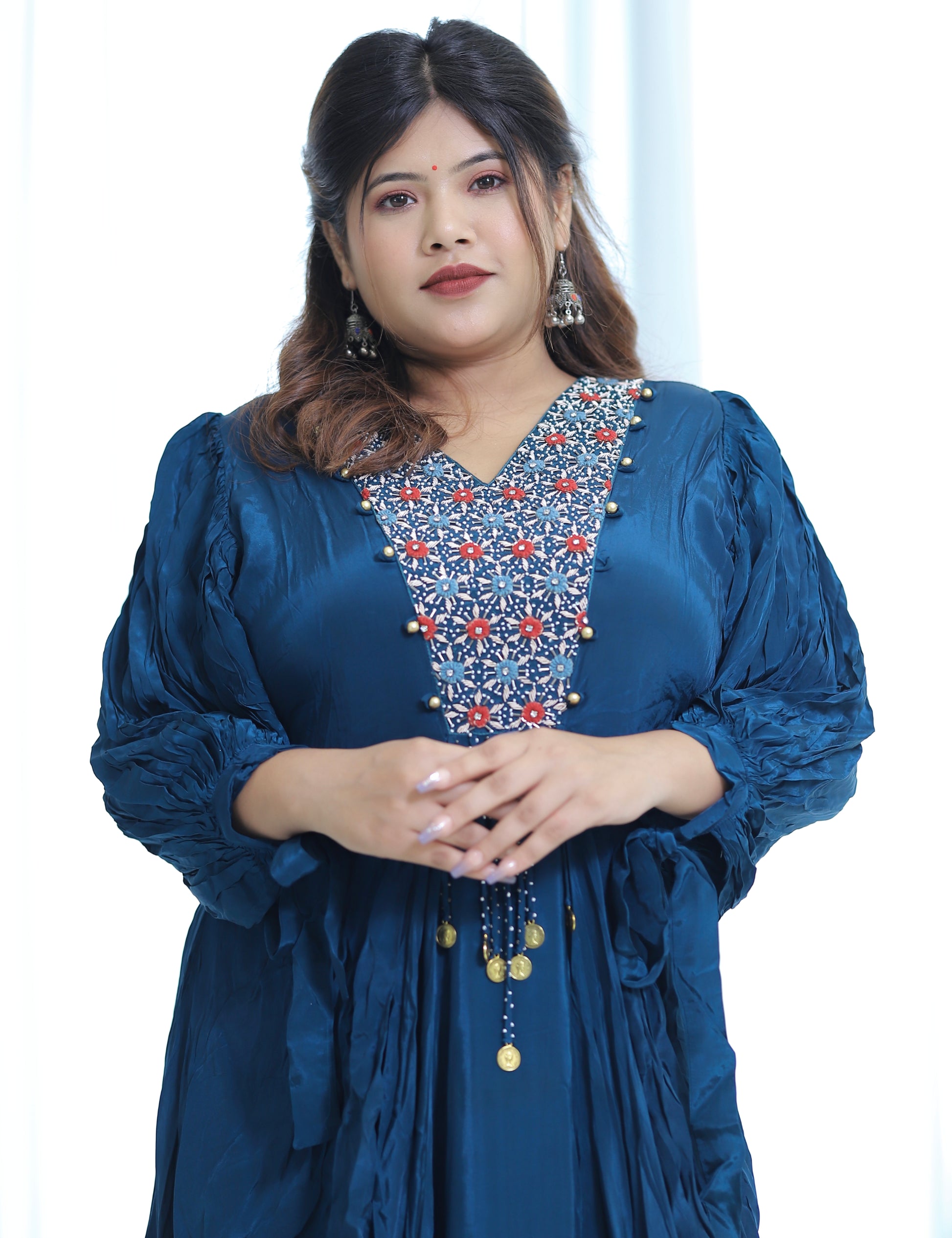 This elegant TEEL long gown combines timeless design with expert craftsmanship. Crafted to provide a flattering silhouette, it offers both comfort and style for formal occasions. Its flowing fabric ensures graceful movement, making it an ideal choice for evening events or special celebrations. Perfect for those seeking sophistication and refined elegance in their wardrobe.