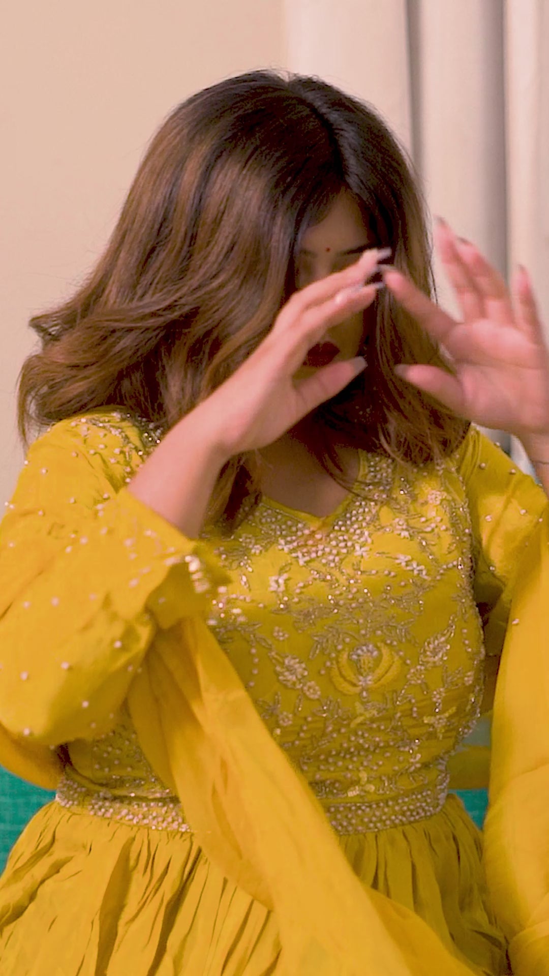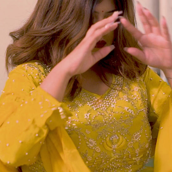 This elegant yellow partywear gown combines vibrant color with a flattering silhouette, perfect for festive occasions and celebrations. Designed to offer both style and comfort, it enhances your presence with its graceful flow and eye-catching hue. Ideal for those seeking a sophisticated yet lively outfit for special events.