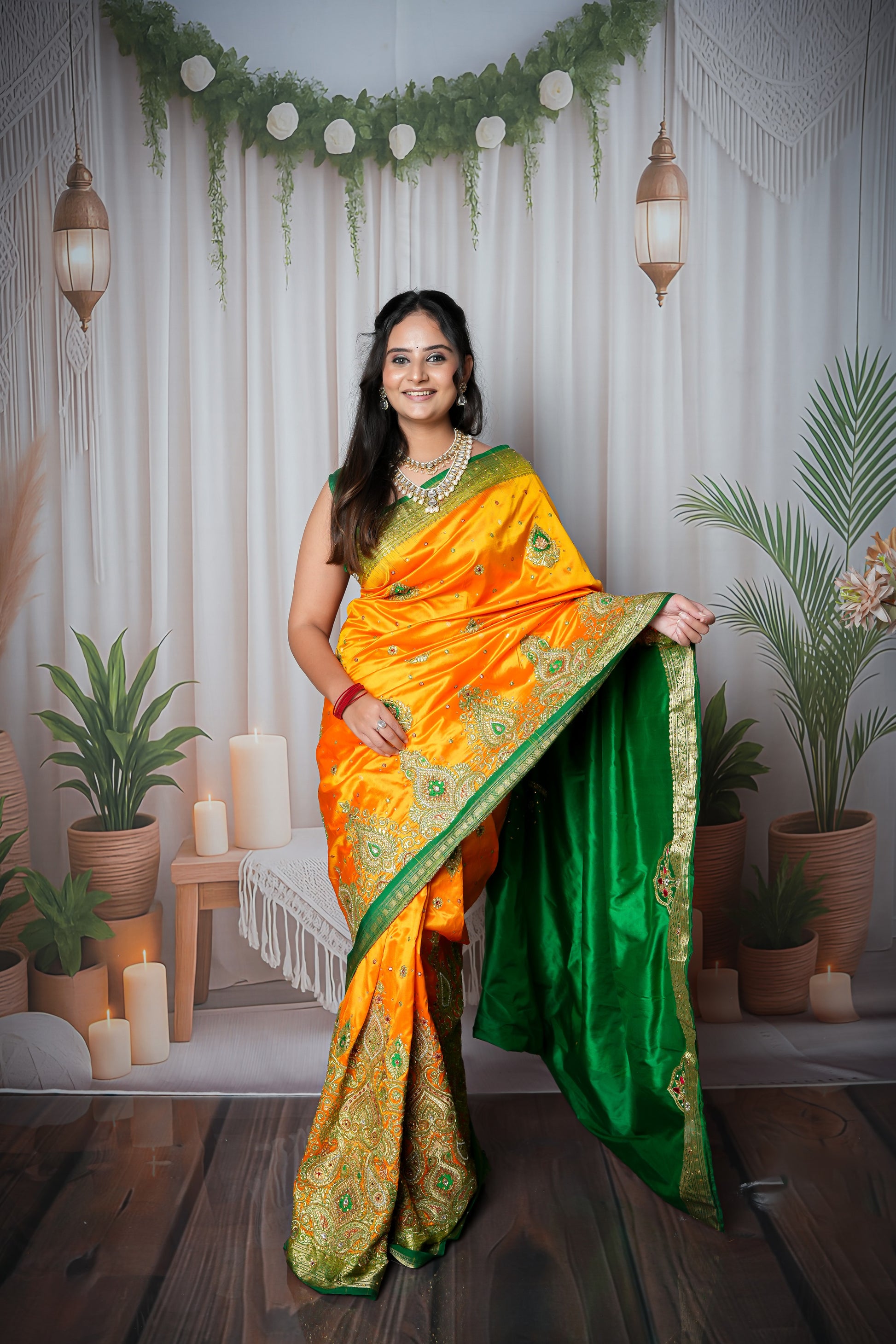 Embrace timeless elegance with this handloom silk saree in vibrant yellow. Expertly woven, its rich silk fabric offers a smooth, lustrous finish that drapes beautifully, making it ideal for festive occasions and formal events. The traditional handloom craftsmanship ensures each saree is unique, providing durability alongside refined aesthetic appeal. Perfect for those who appreciate authentic artistry and lasting quality.