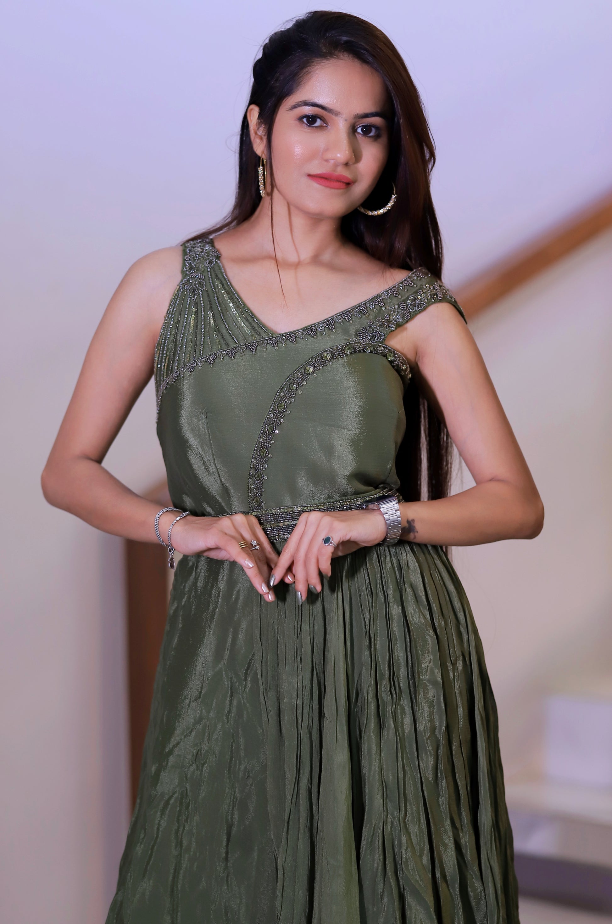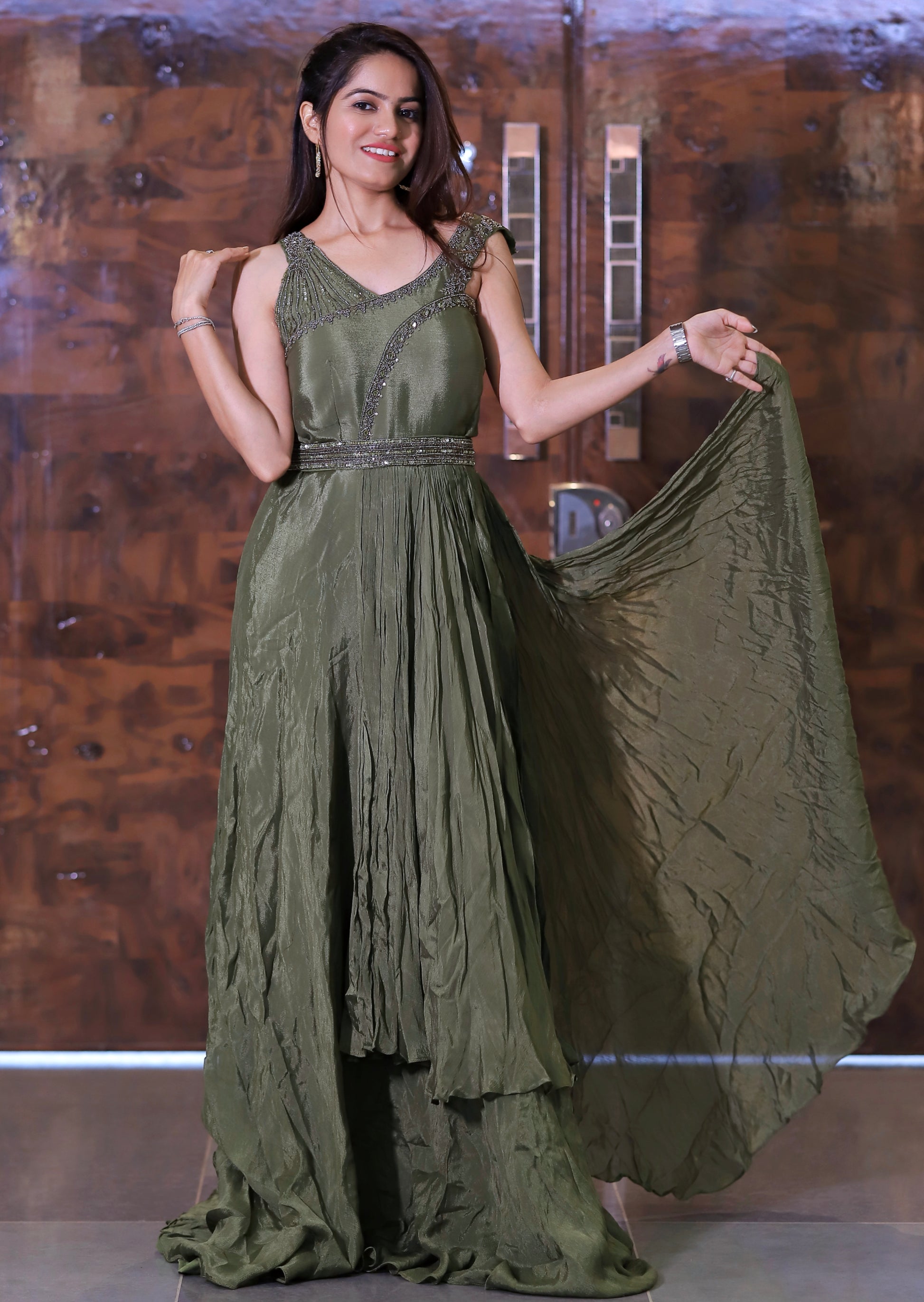 This Indo Western outfit features a vibrant mehndi-inspired color palette, blending traditional hues with contemporary design. Expertly crafted to offer both elegance and comfort, it suits festive occasions and casual gatherings alike. The fusion style allows versatile wear, making it a refined choice for those who appreciate cultural aesthetics with a modern twist.