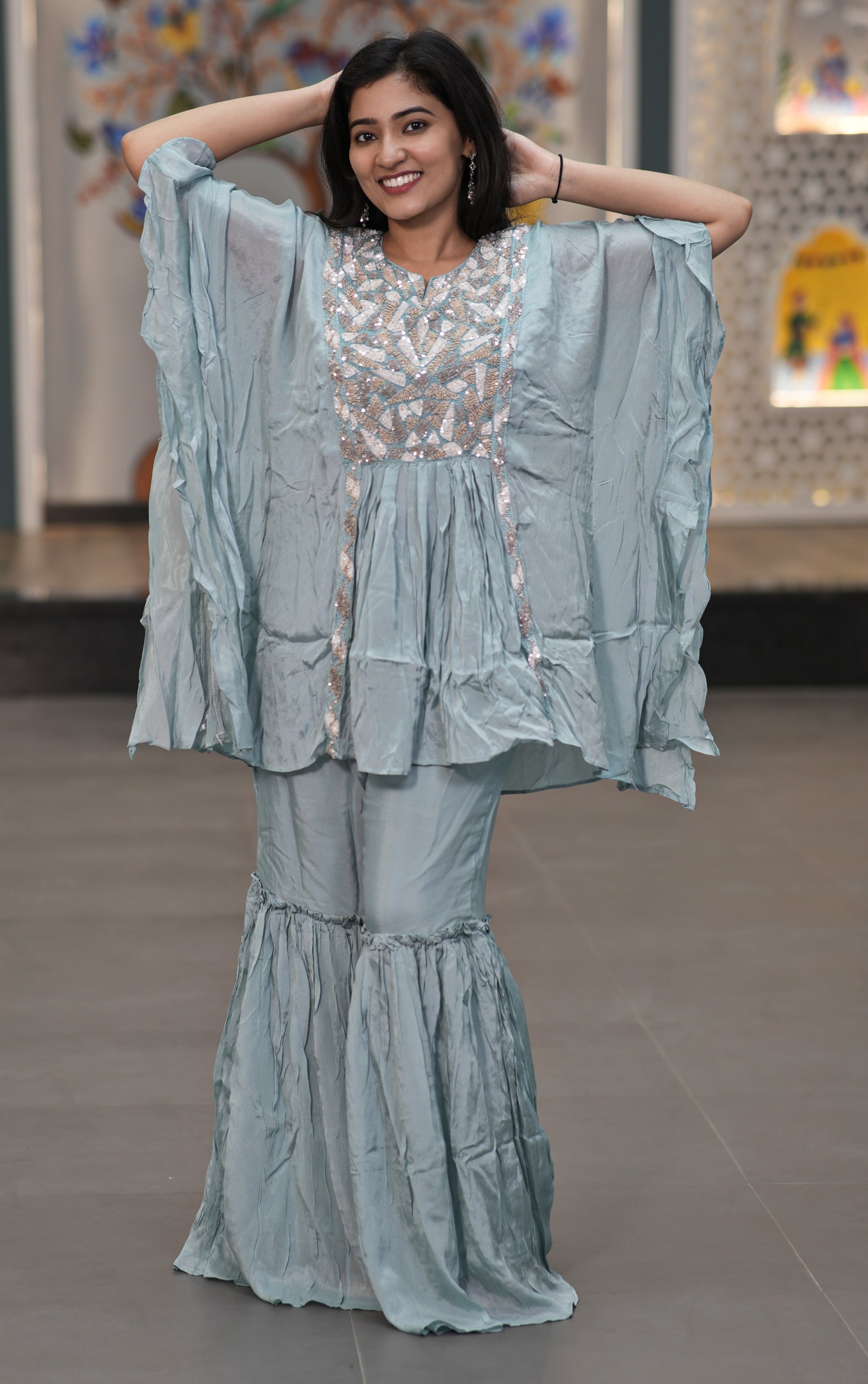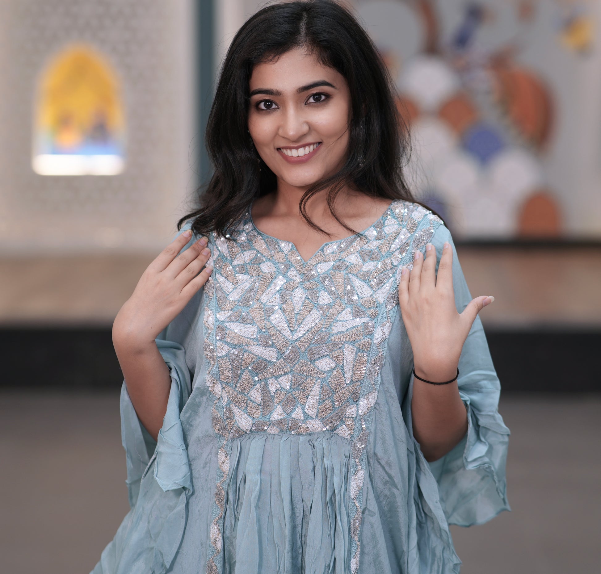 Elevate your festive wardrobe with this sky blue Indo Western partywear ensemble. Expertly crafted to blend traditional charm with contemporary style, it offers a refined silhouette perfect for celebrations. The soothing sky blue hue adds a fresh, elegant touch, making it ideal for both day and evening events. Designed for comfort and style, this outfit ensures you stand out with subtle sophistication at any party or cultural gathering.