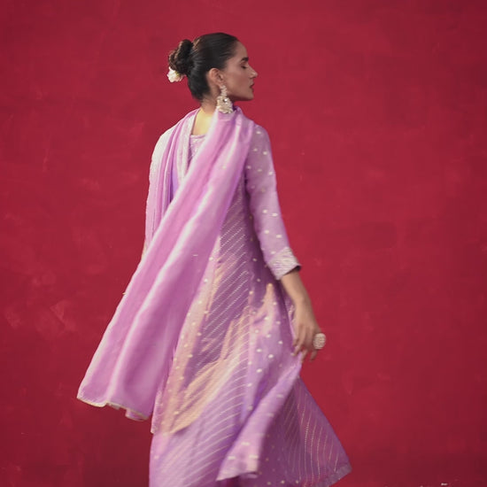 Elevate your festive wardrobe with this lavender partywear kurti set, expertly crafted to combine elegance and comfort. The soothing lavender hue adds a refreshing touch, while the tailored design ensures a flattering fit. Perfect for celebrations and social gatherings, this kurti set offers both style and ease, making it an essential piece for sophisticated occasions.