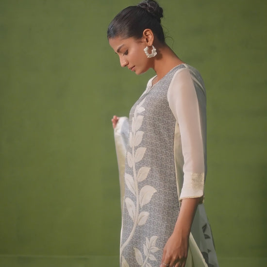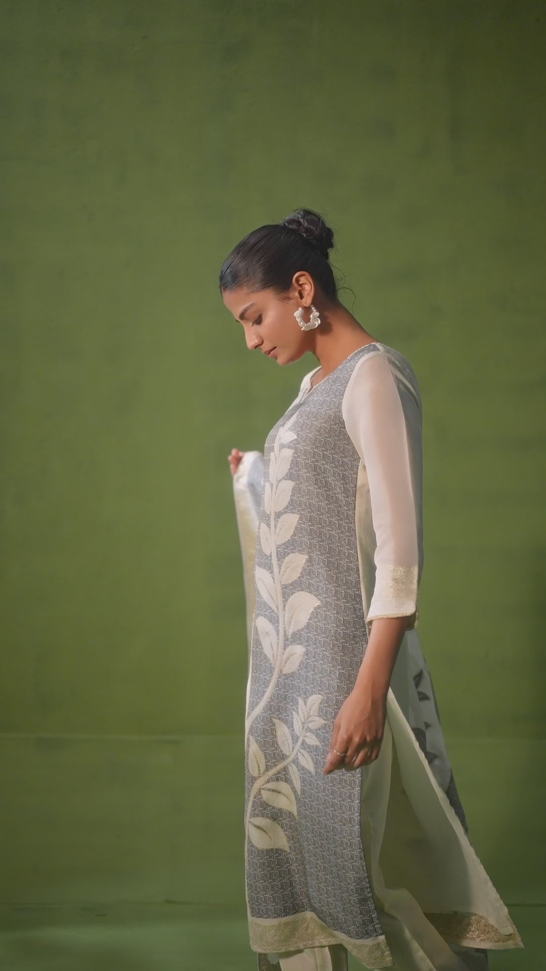 Elevate your wardrobe with this ivory cream kurti set paired with a stylish fancy dupatta. Crafted for comfort and elegance, the set offers a sophisticated look suitable for both casual and festive occasions. The subtle cream tone enhances versatility, while the accompanying dupatta adds a refined touch, completing the ensemble with grace and charm.
