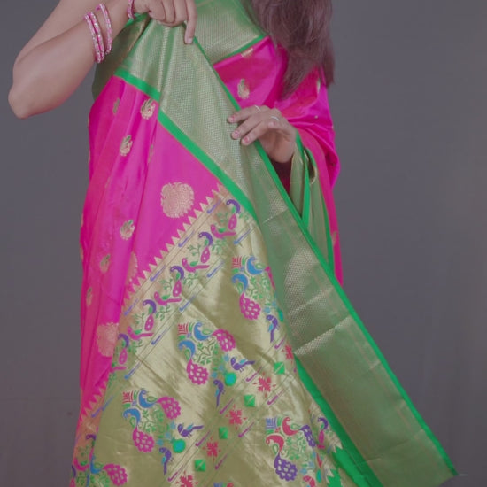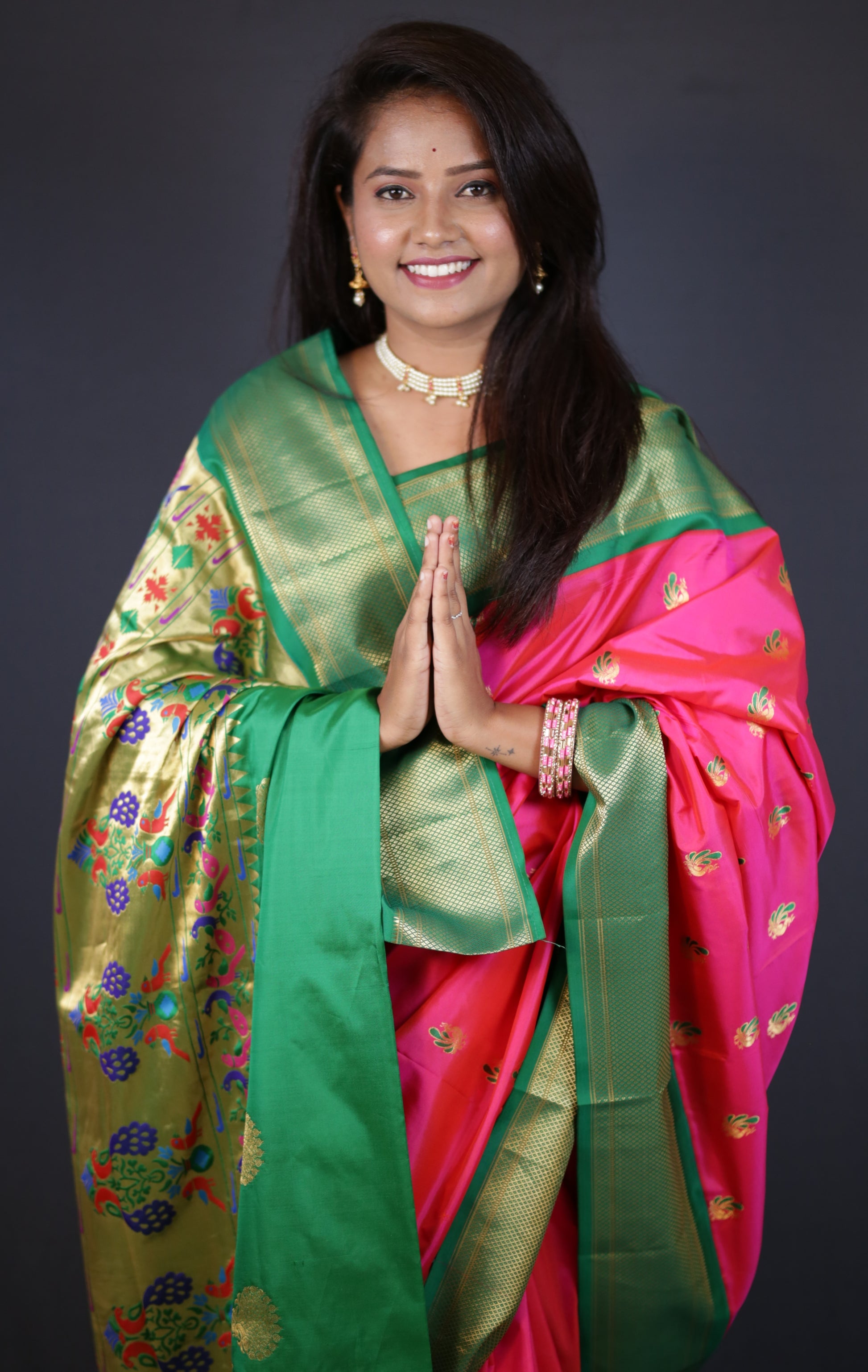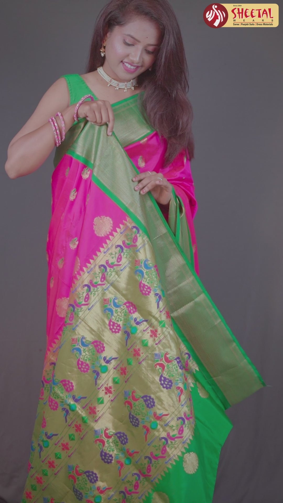 Experience the timeless elegance of the Paithani Silk Saree in a fresh rani hue. Crafted with intricate weaving techniques, this saree showcases rich silk texture combined with traditional motifs, offering a luxurious drape and vibrant finish. Ideal for special occasions, it enhances your graceful presence while reflecting expert craftsmanship. Its durable silk fabric ensures lasting beauty and comfort throughout your event.