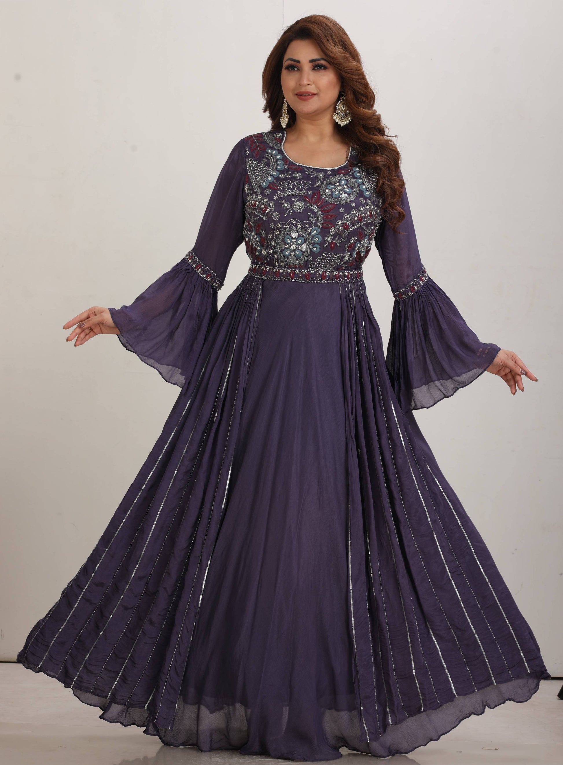 Elevate your evening look with this expertly crafted partywear gown. Designed with attention to detail, it offers a flattering silhouette and luxurious fabric that ensures comfort throughout your event. Perfect for formal occasions, this gown combines elegance and style to make a lasting impression.