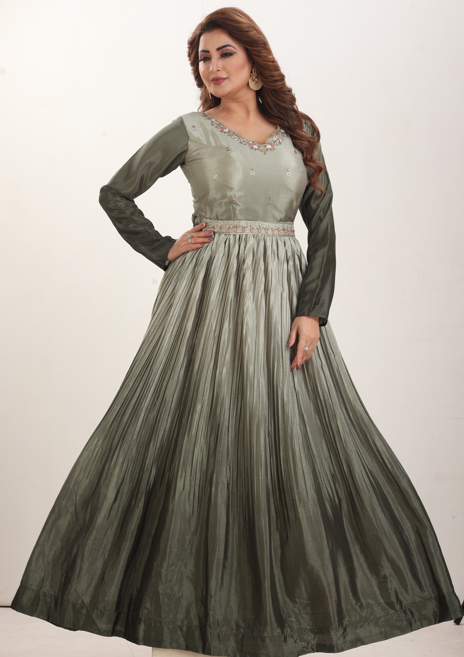 Elevate your festive wardrobe with this expertly crafted Mehndi partywear gown. Designed to blend traditional charm with contemporary elegance, it features intricate detailing that highlights your style at any celebration. The gown’s comfortable fit and rich fabric ensure you stay graceful and confident throughout your event. Perfect for making a memorable impression at Mehndi ceremonies and festive gatherings.