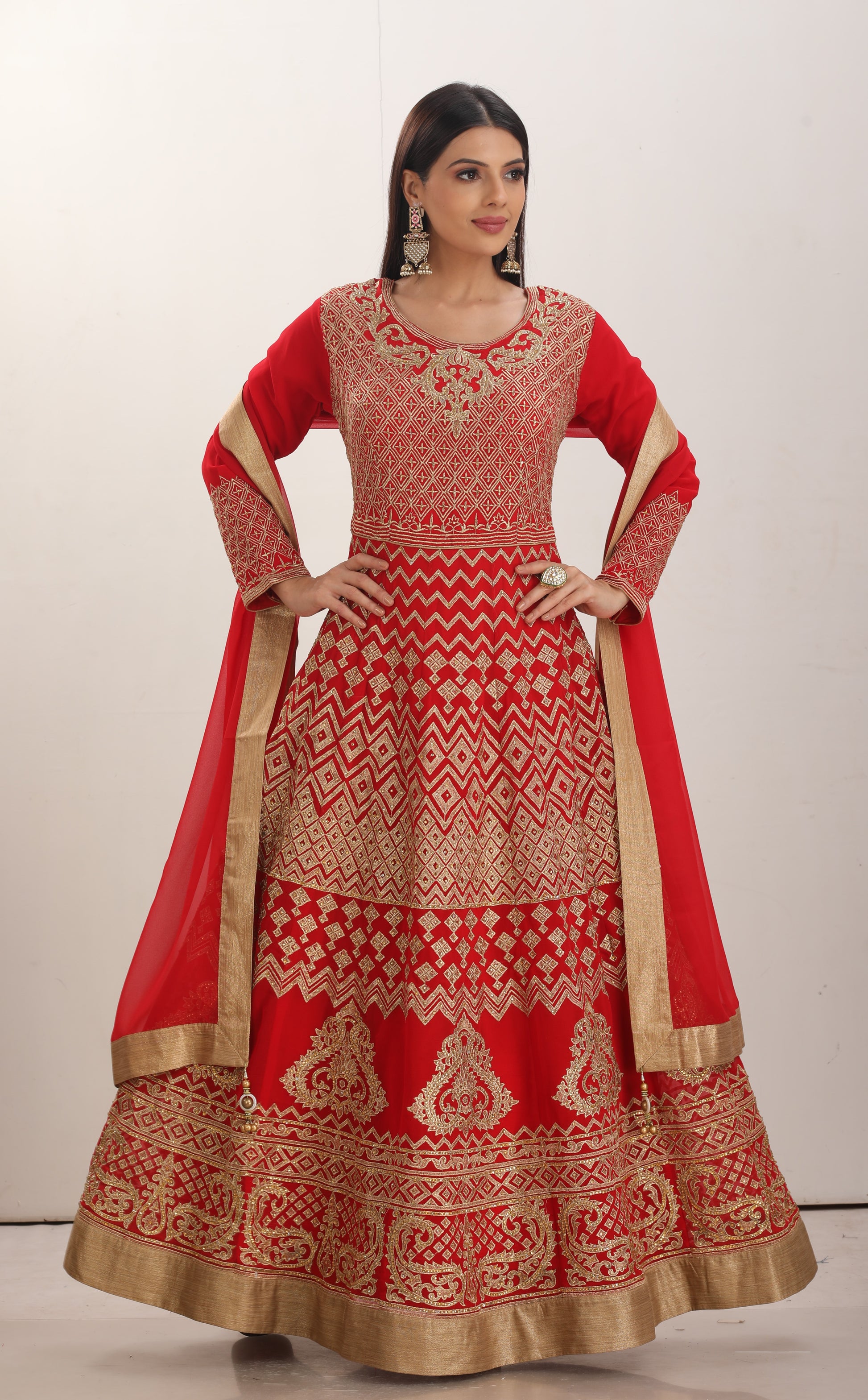 Elevate your evening look with this fresh red partywear gown, expertly designed to combine elegance and comfort. Crafted with attention to detail, it offers a flattering silhouette perfect for special occasions. The vibrant red hue ensures you stand out, while the quality fabric provides a graceful drape and lasting wear. Ideal for celebrations, this gown balances style and sophistication effortlessly.