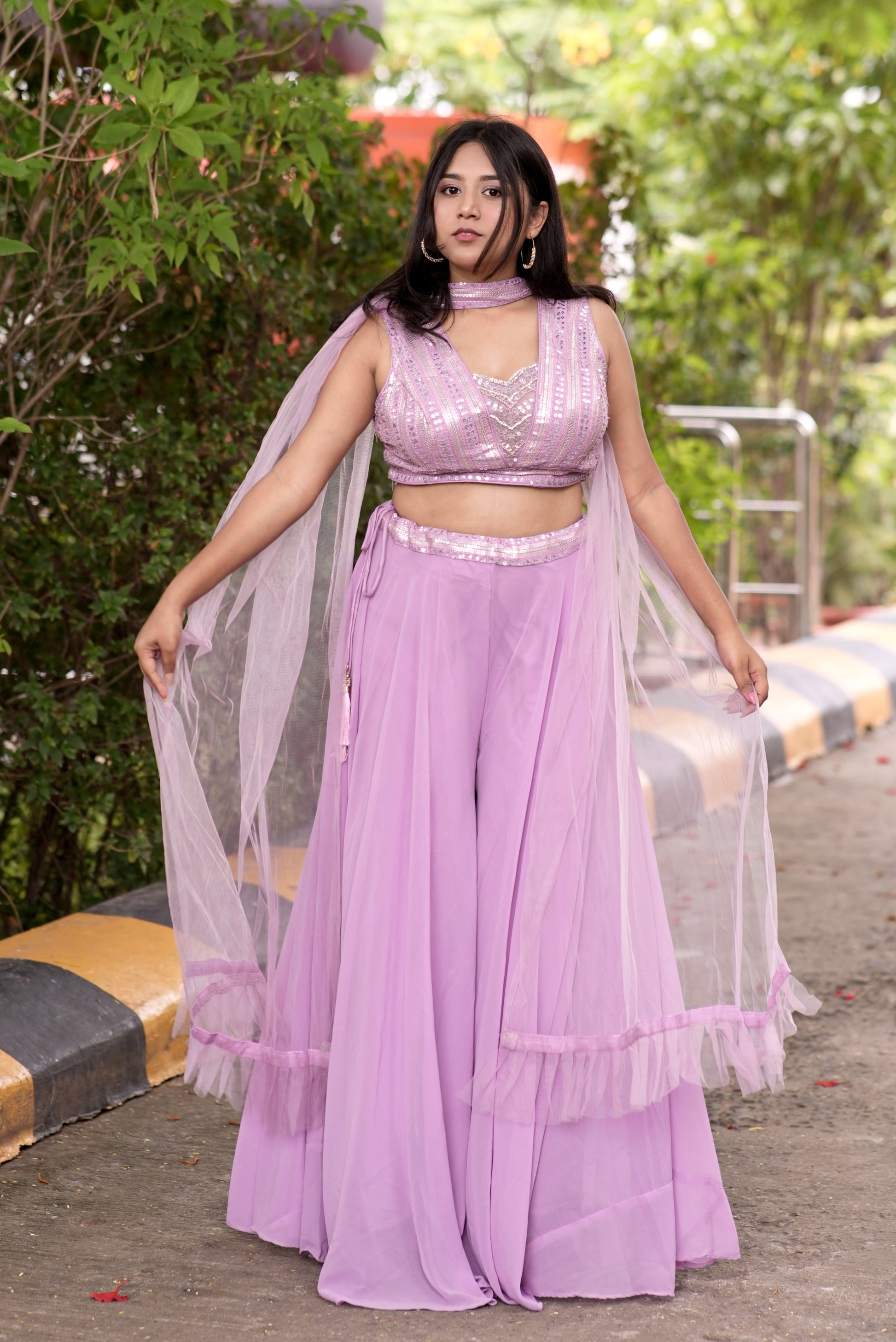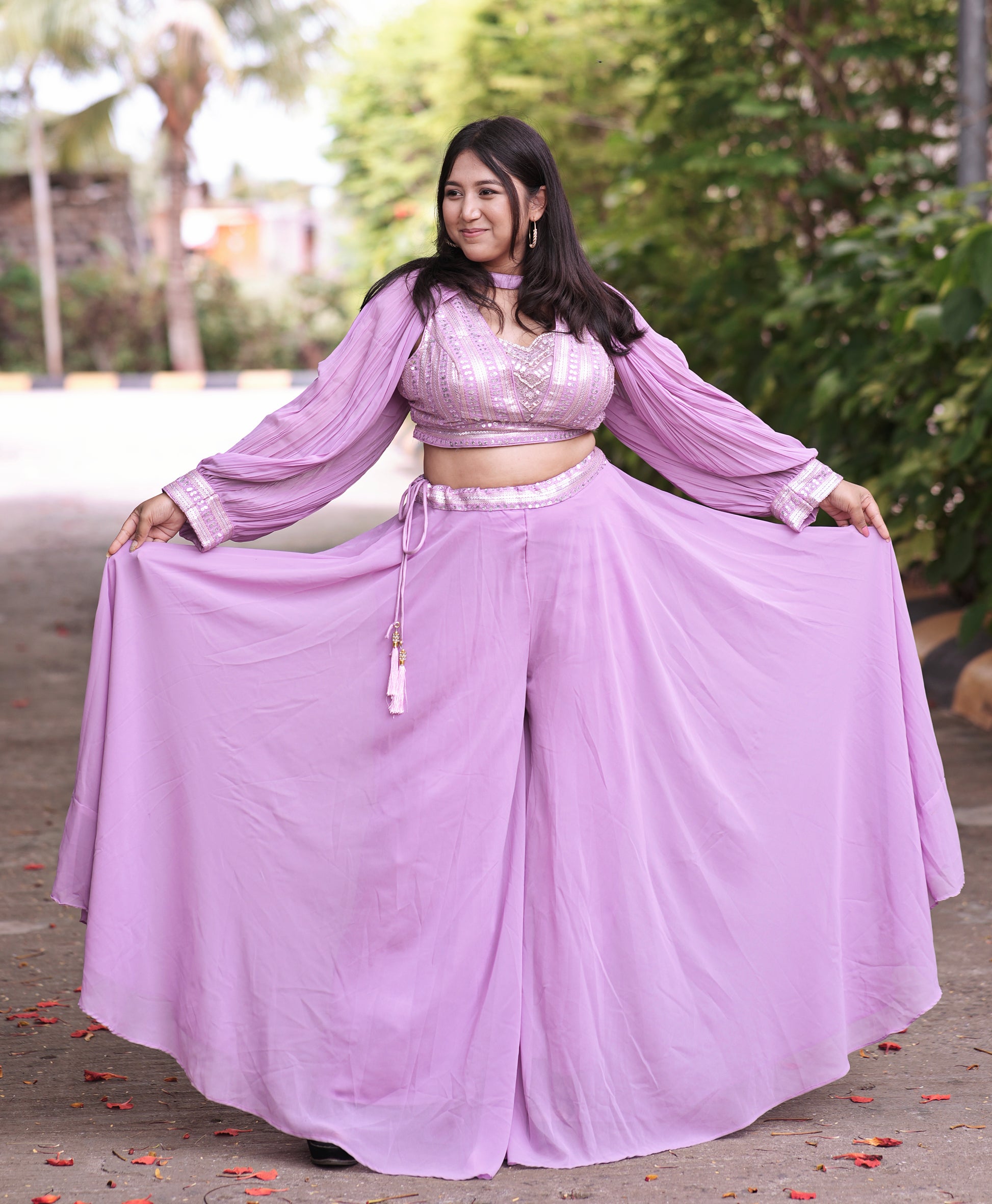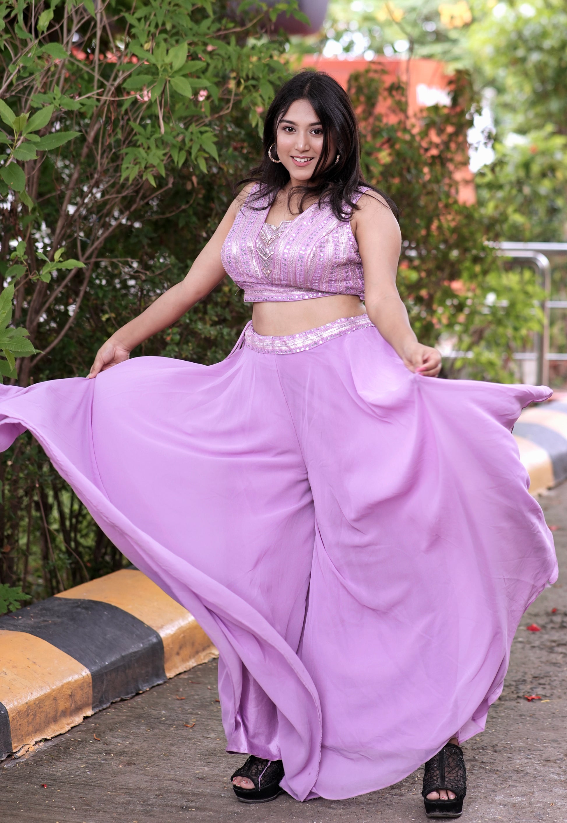 Elevate your wardrobe with the Lovender Plazo Set, expertly crafted for both comfort and style. This set features a flowing plazo paired with a matching top, designed to offer ease of movement and a flattering silhouette. Ideal for casual outings or festive occasions, it combines contemporary fashion with traditional elegance, ensuring you look polished and feel confident throughout the day.