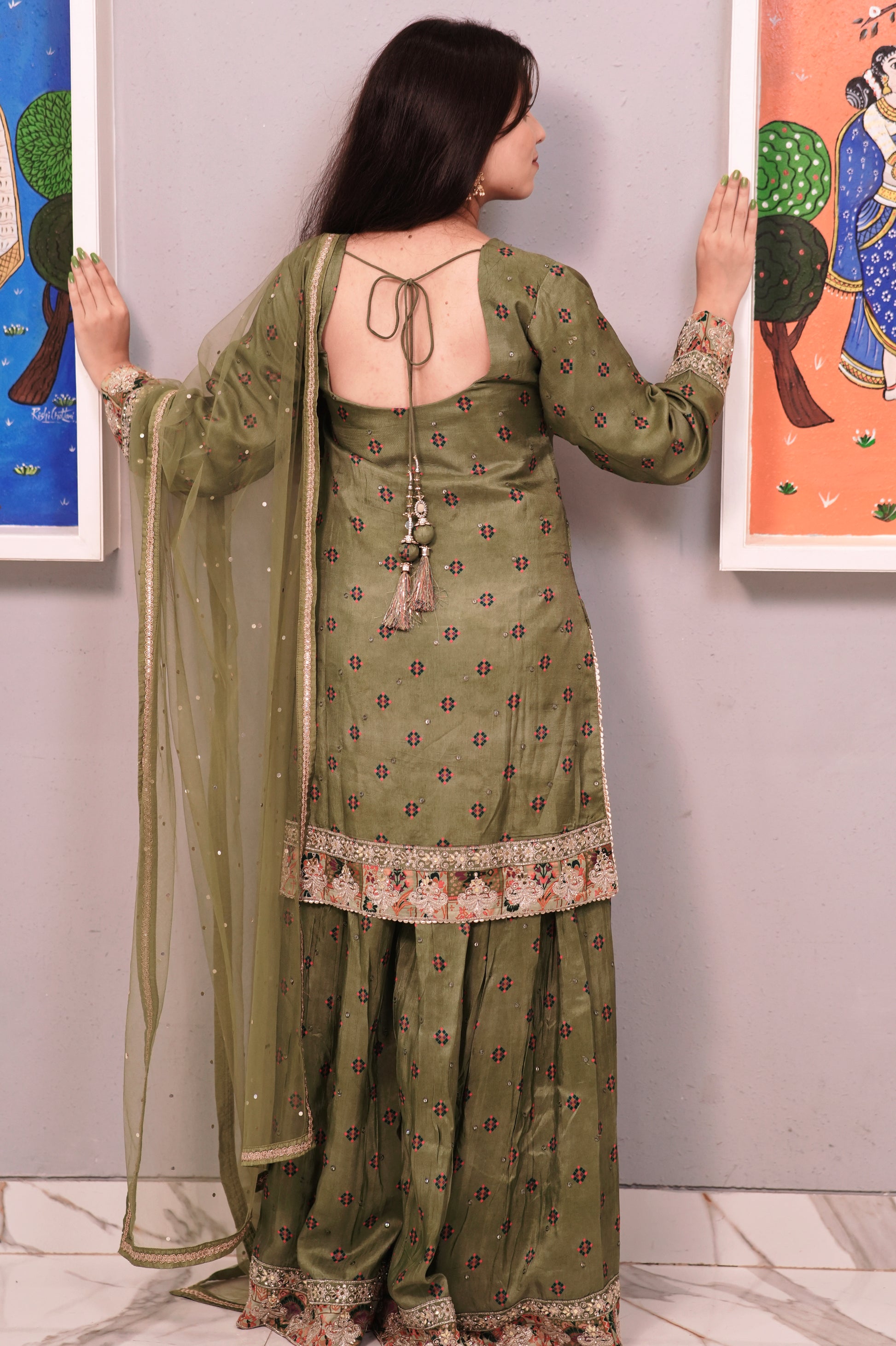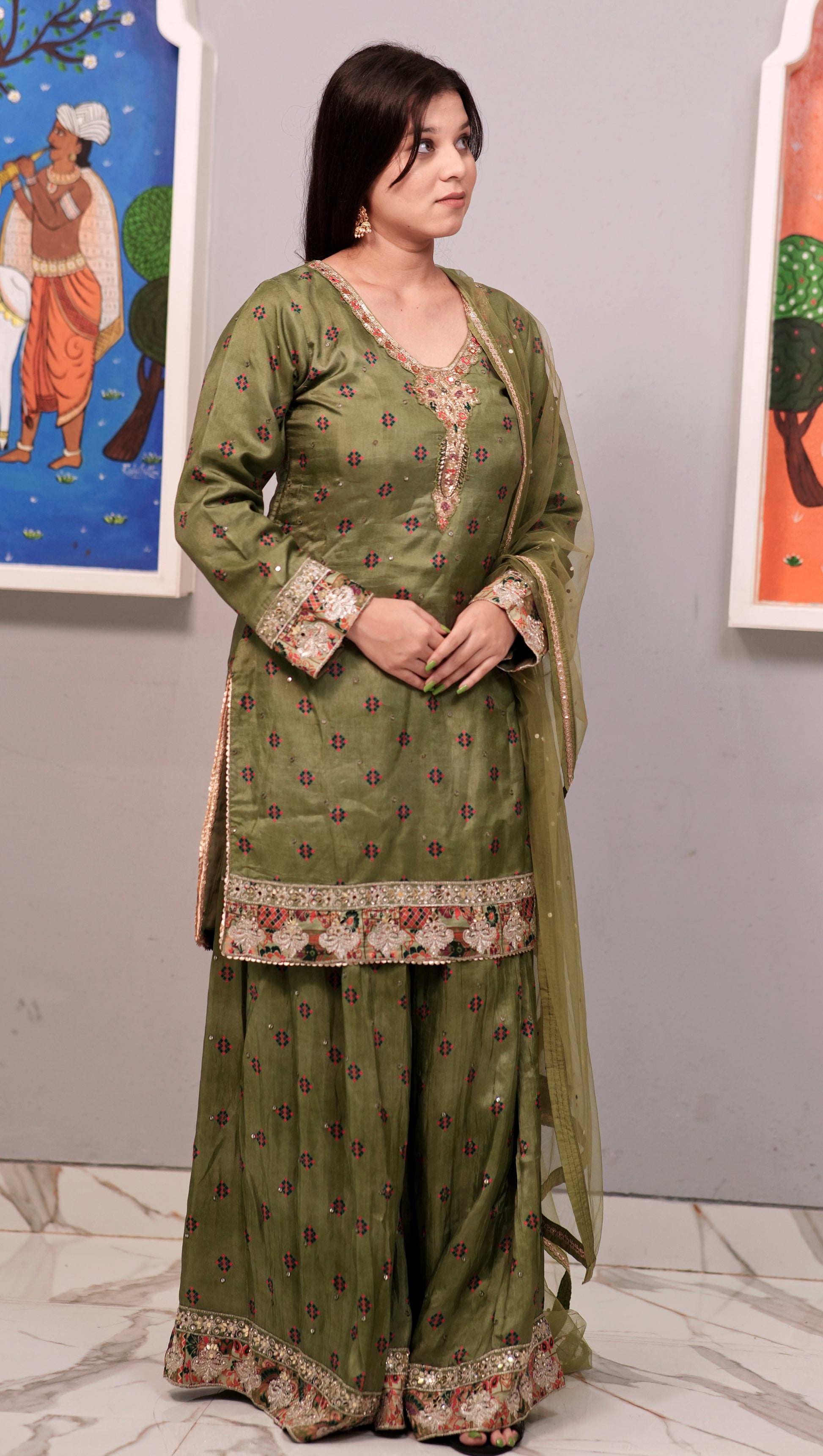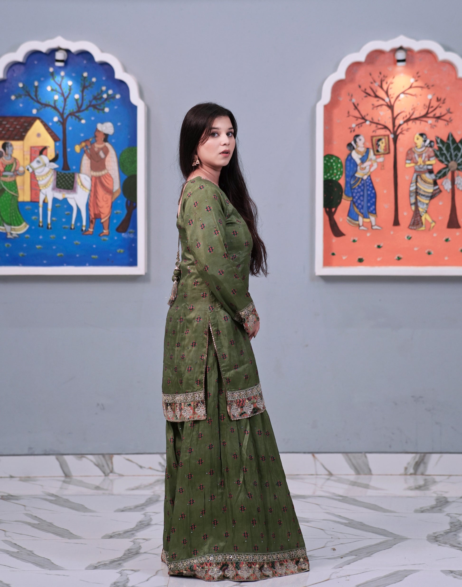 Elevate your ethnic wardrobe with this expertly crafted Mehndi Plazo Set. Designed for comfort and style, the set features a flowing plazo paired with a matching top, perfect for festive occasions or casual gatherings. The breathable fabric ensures ease of movement, while the elegant design highlights traditional aesthetics with a modern touch. Ideal for those seeking a blend of tradition and contemporary fashion in one versatile ensemble.