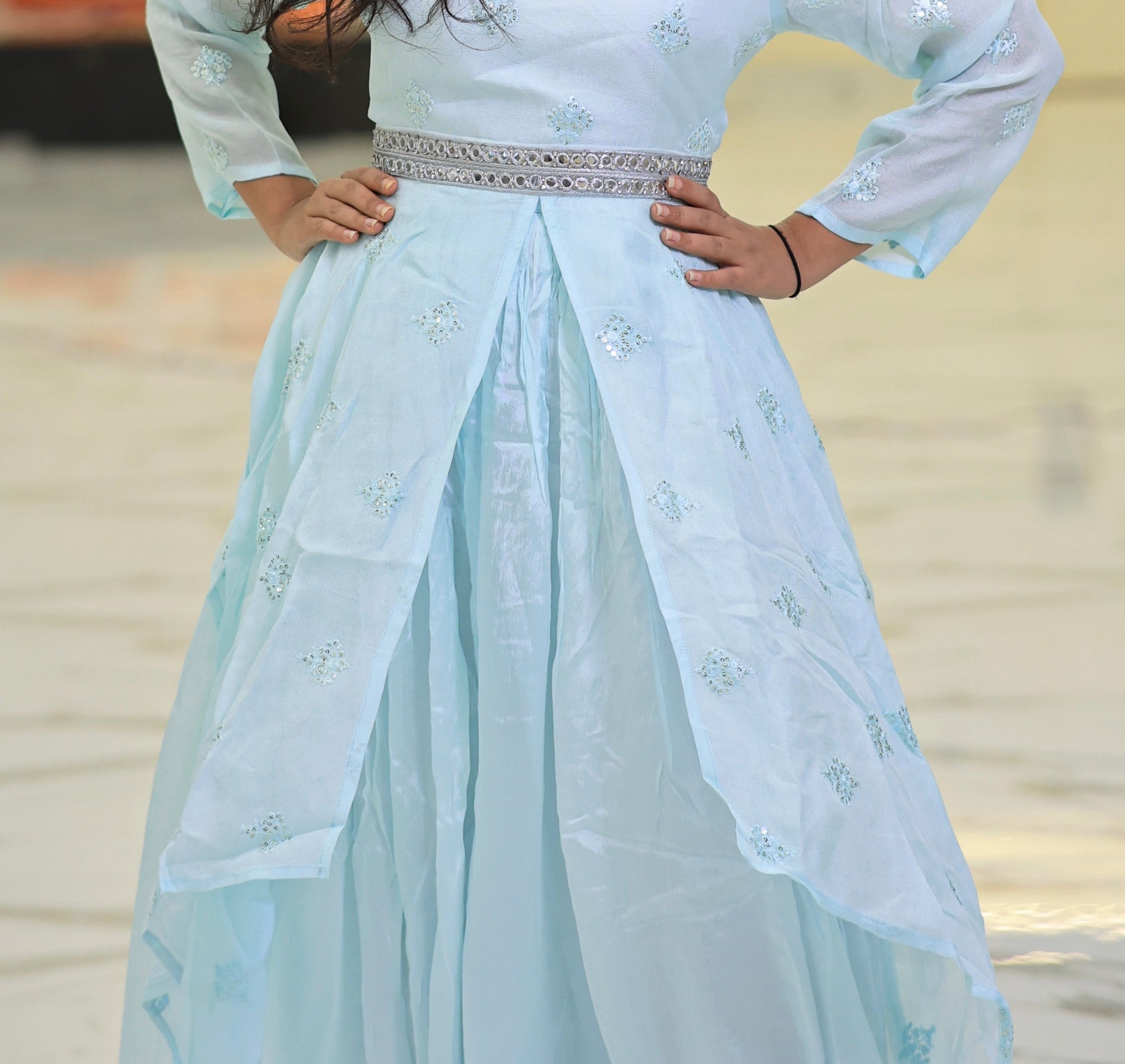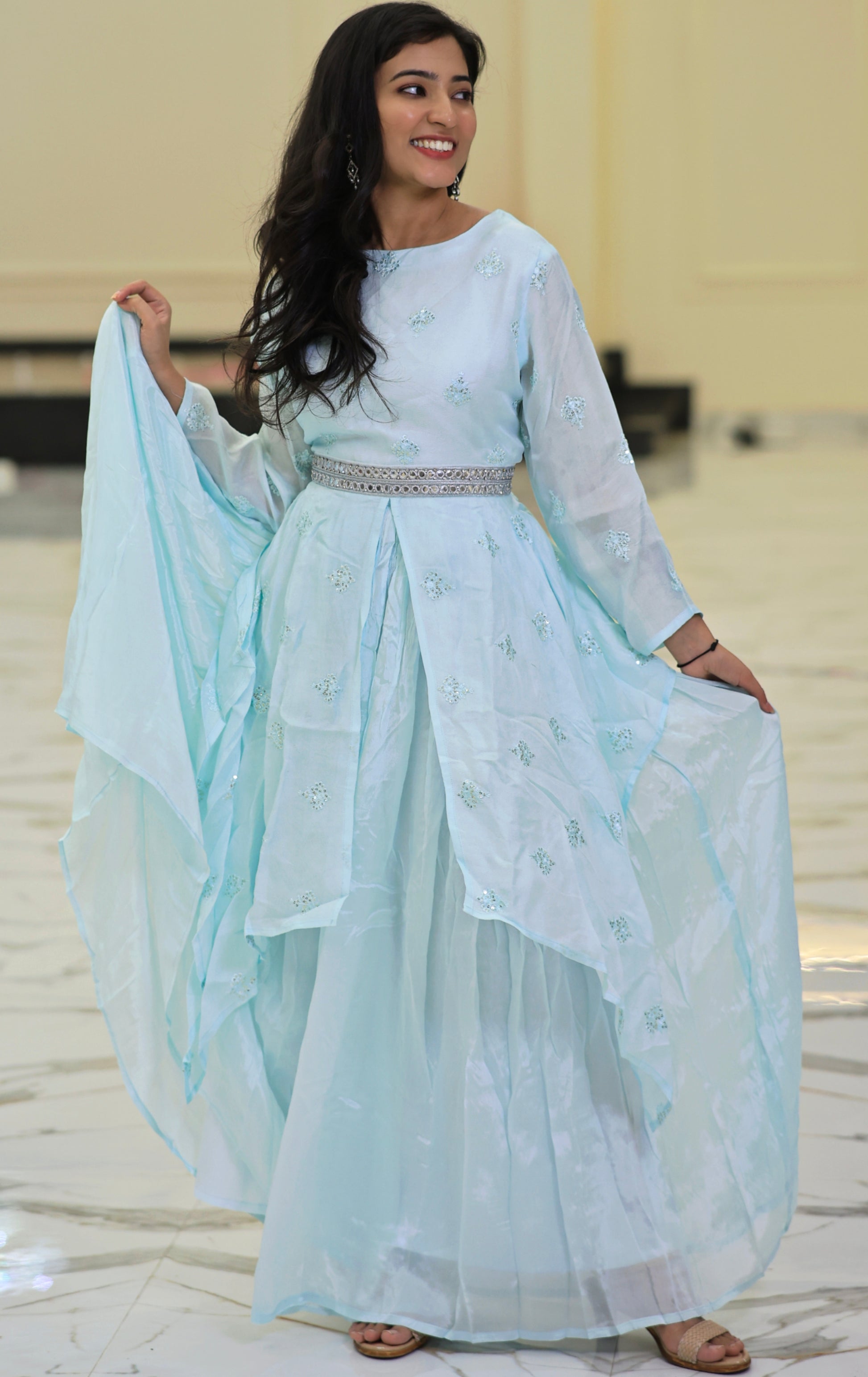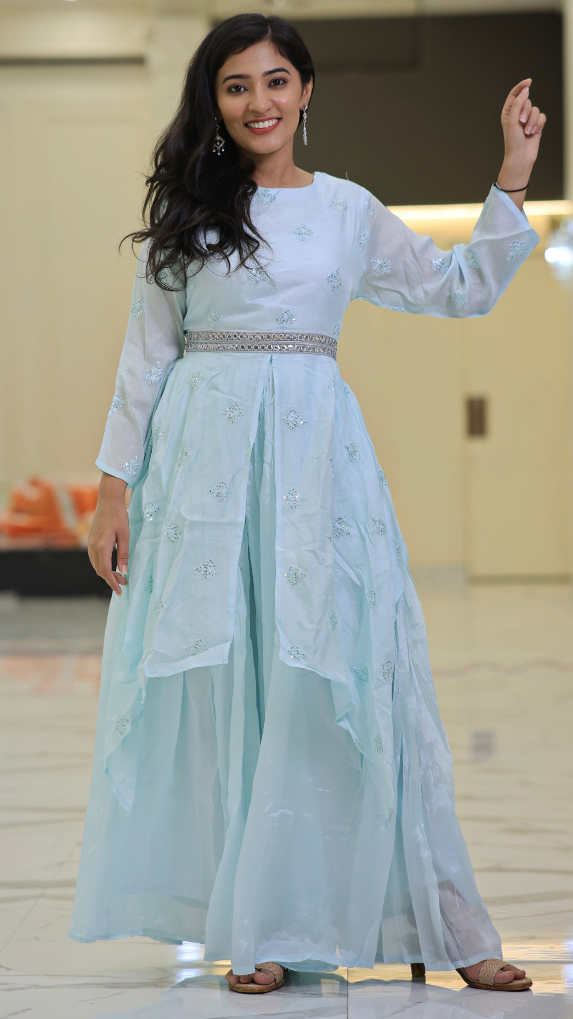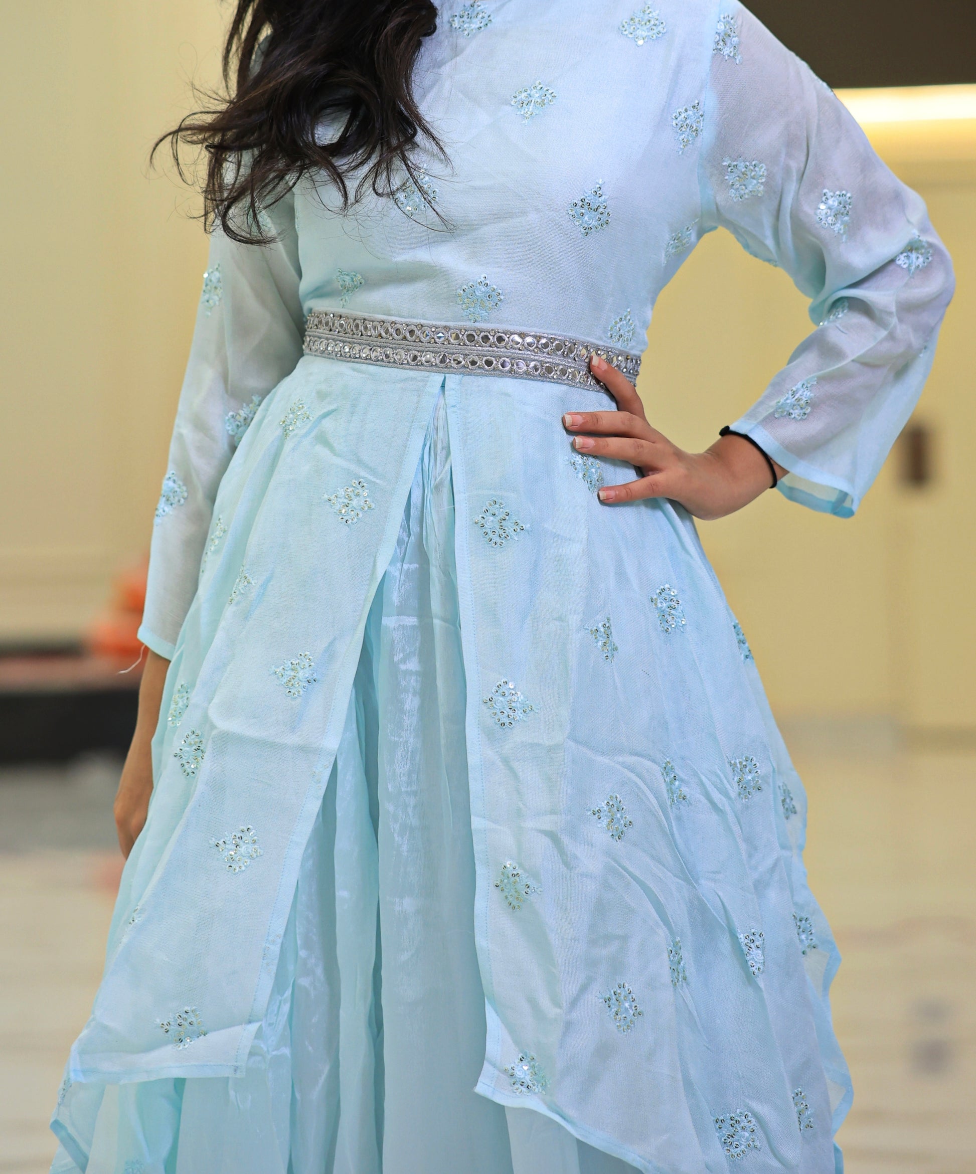 Elevate your wardrobe with this expertly crafted sky blue plazo set, designed for both comfort and style. The breathable fabric ensures all-day ease, while the tailored fit offers a flattering silhouette. Perfect for casual outings or semi-formal occasions, this set combines versatility with a refined look, making it a valuable addition to your collection.