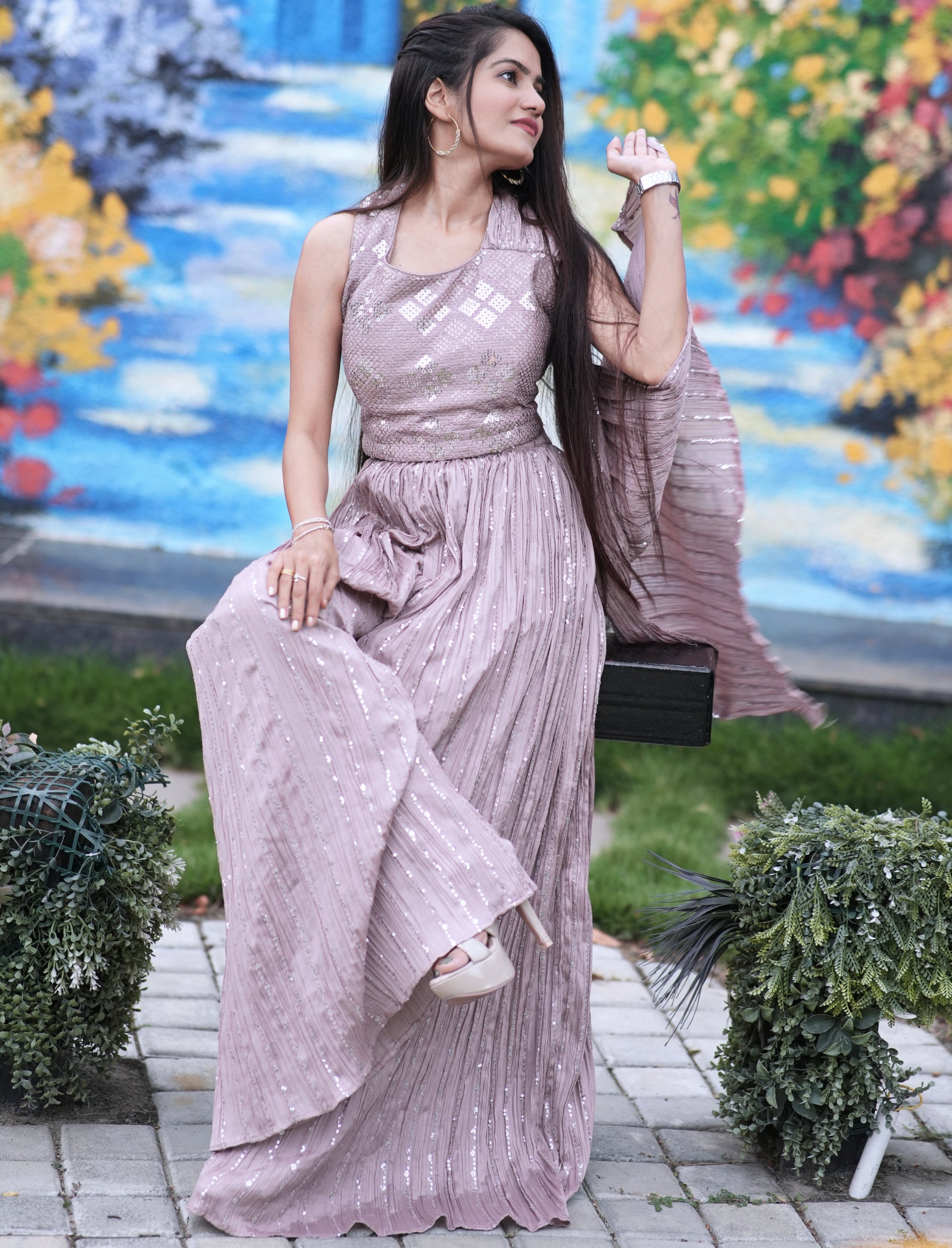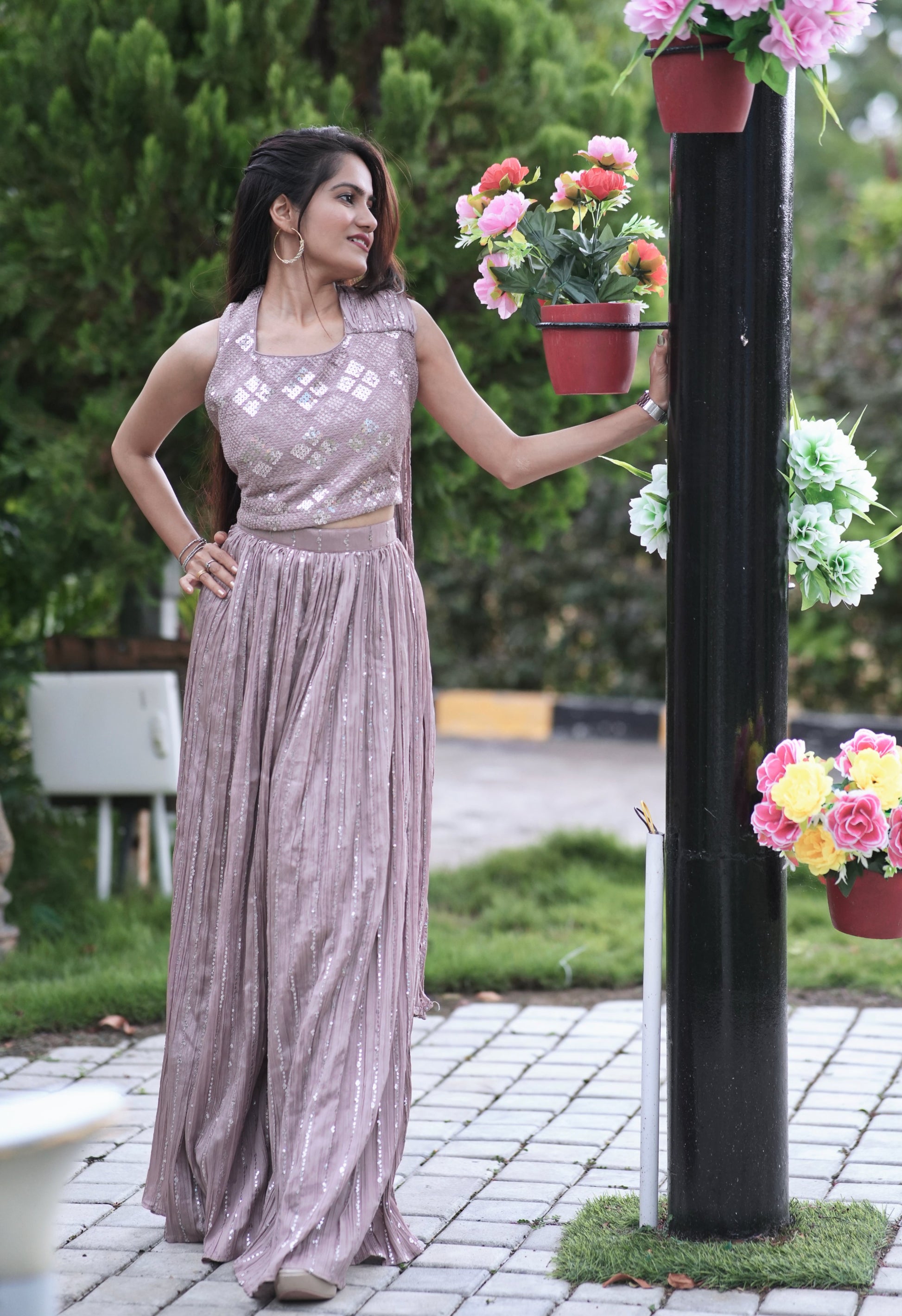 Elevate your festive wardrobe with this expertly crafted partywear palazzo set in a rich violet hue. Designed for comfort and style, the flowing palazzo pants paired with a matching top create a graceful silhouette perfect for celebrations. The vibrant color and elegant cut ensure you stand out with sophistication at any event.