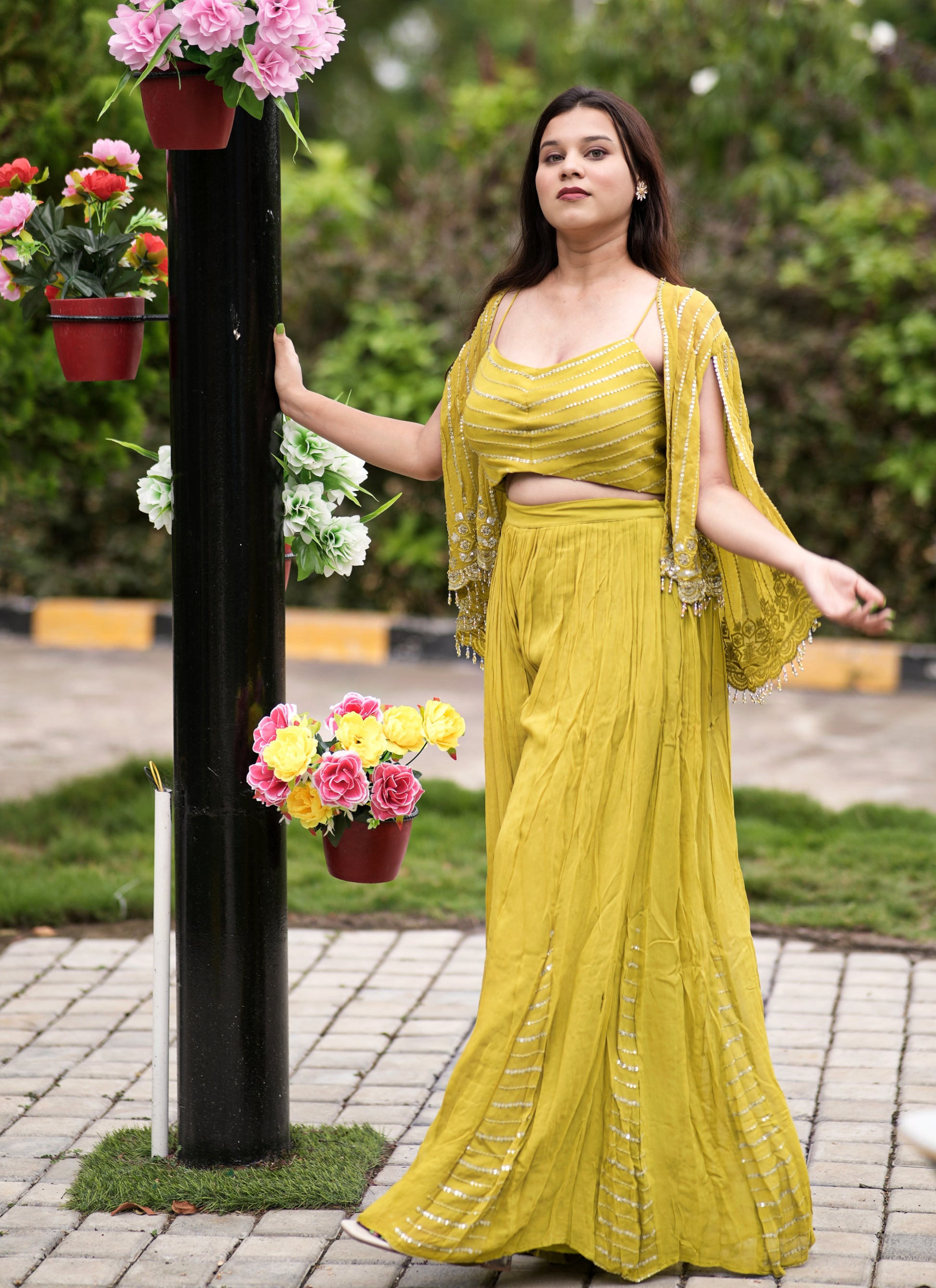 Elevate your ethnic wardrobe with the Paroot Mehndi Colour Partywear Plazo Set, expertly crafted for comfort and style. This set features vibrant mehndi-inspired hues and a flowing plazo design that ensures ease of movement while making a striking statement at any festive occasion. Perfectly blending traditional aesthetics with contemporary fashion, it offers a refined look suitable for celebrations and gatherings.