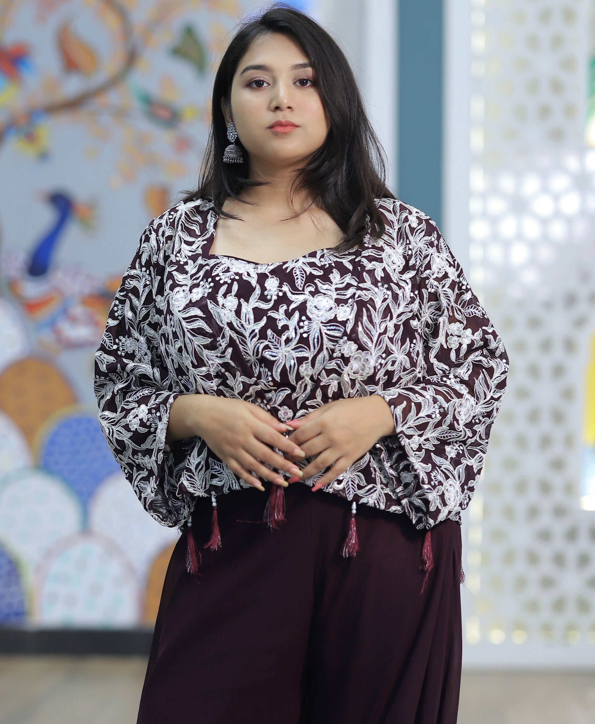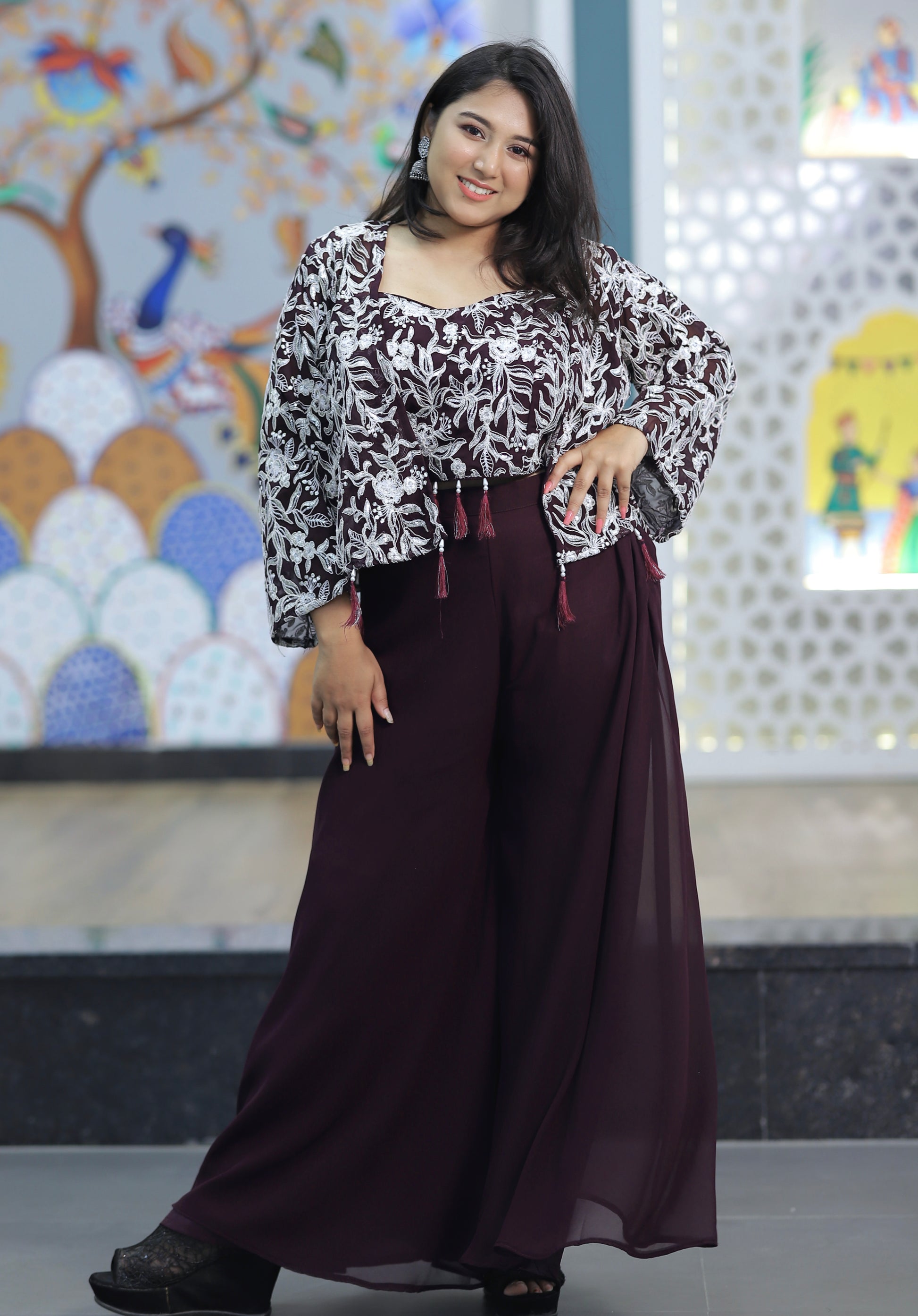 Elevate your wardrobe with the Wine Plazo Set, expertly crafted for both comfort and style. This set features a rich wine hue that adds sophistication to any occasion. Designed with breathable fabric and a flattering fit, it ensures ease of movement while maintaining a polished look. Perfect for casual outings or semi-formal events, the Wine Plazo Set combines elegance with practicality for the discerning wearer.