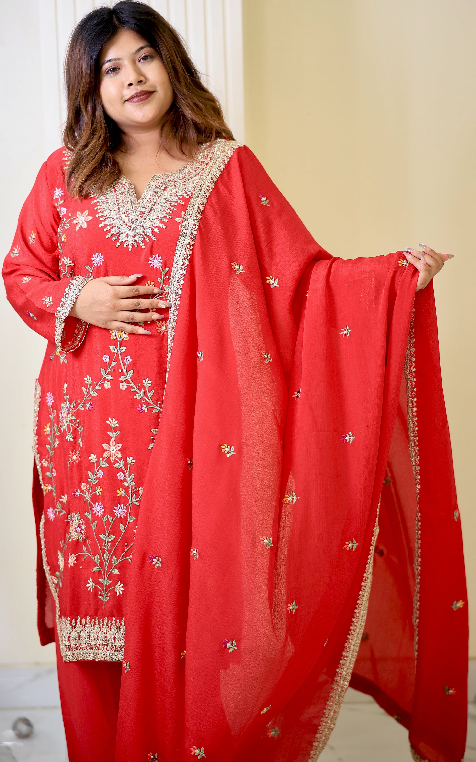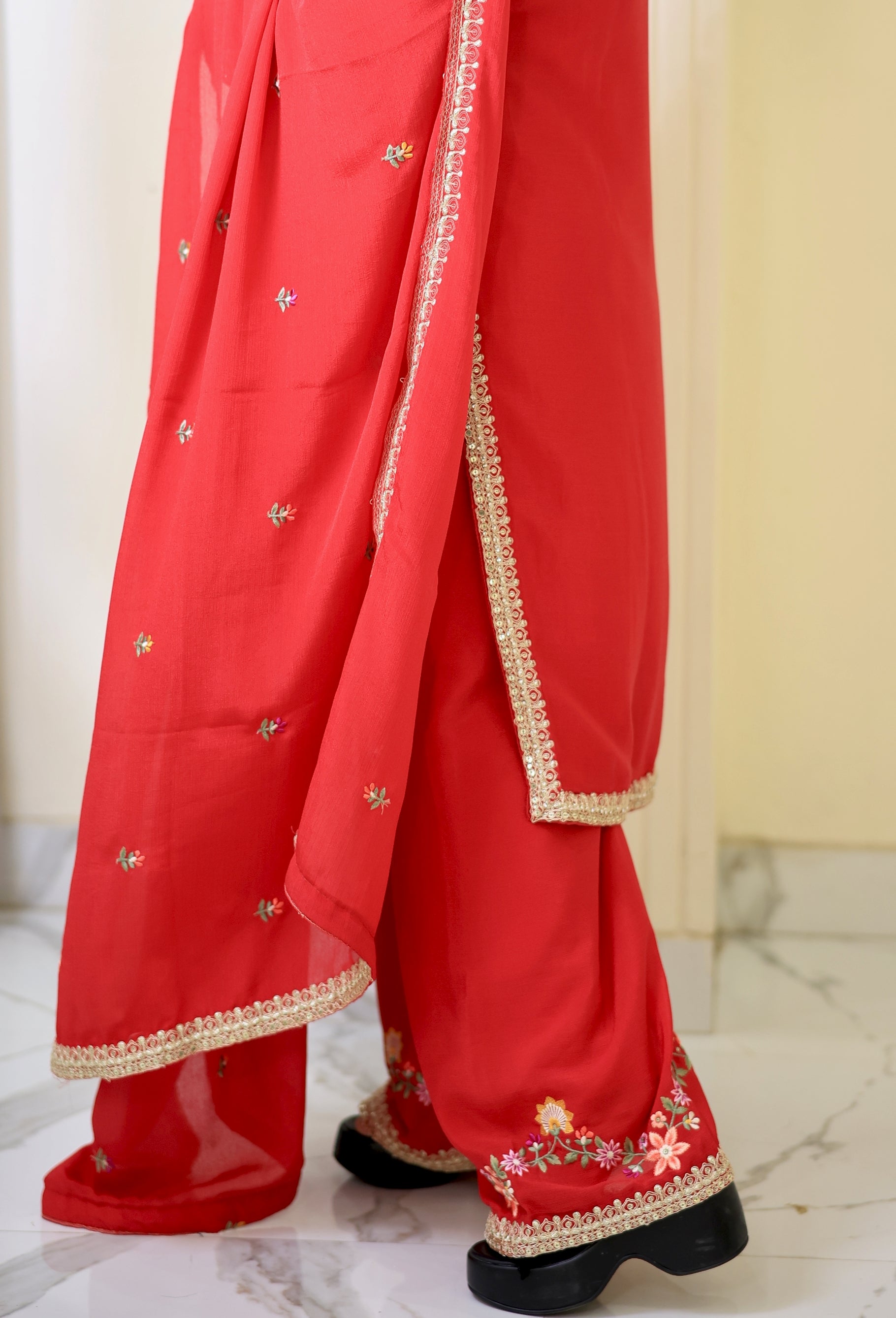 Elevate your wardrobe with this expertly crafted Plazo Set, designed for both comfort and style. The flowing palazzo pants offer ease of movement and a flattering silhouette, while the matching top completes a cohesive, elegant look. Ideal for casual outings or festive occasions, this set combines traditional charm with contemporary fashion sensibilities. Perfect for those seeking versatility without compromising on sophistication.
