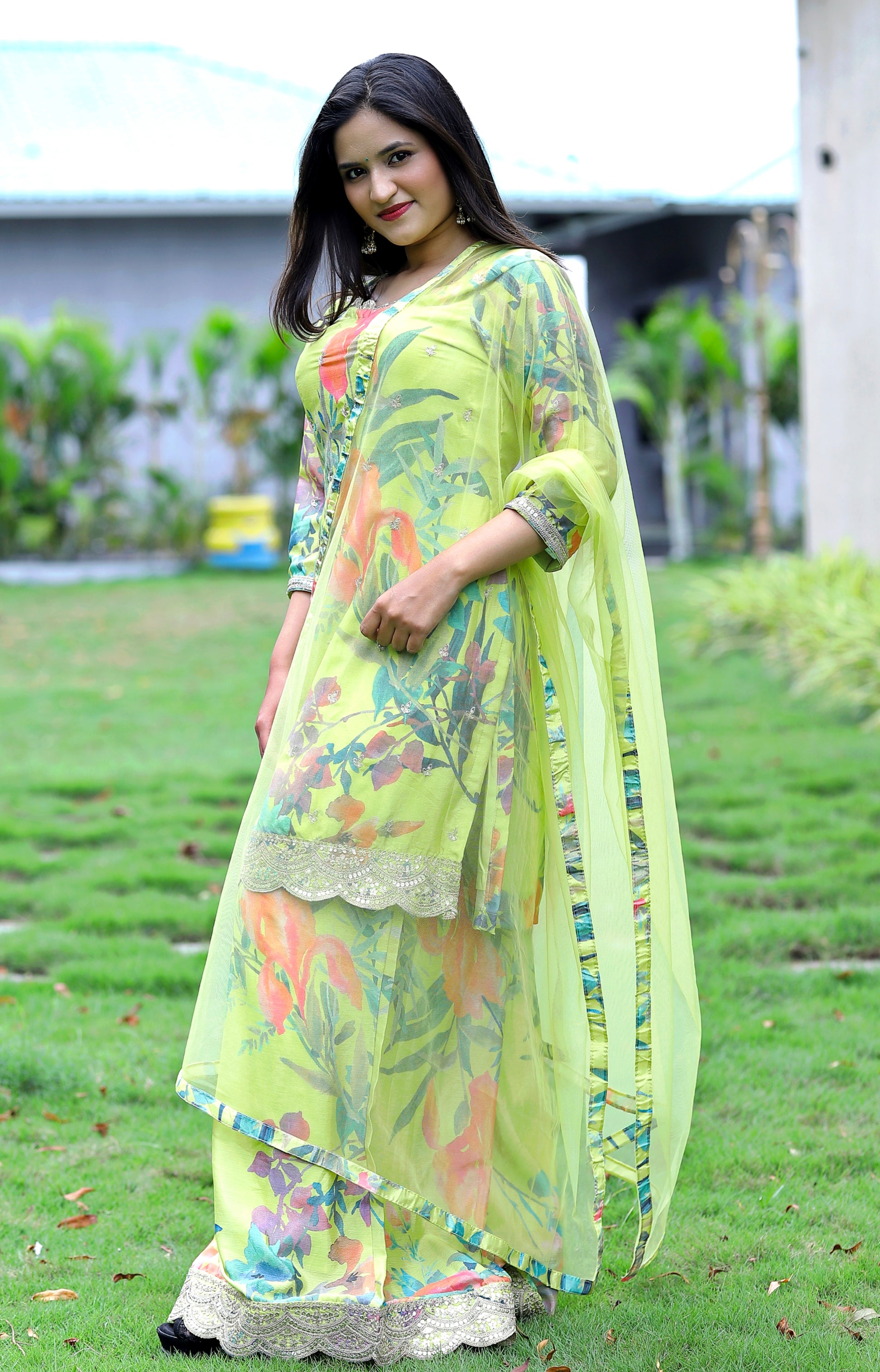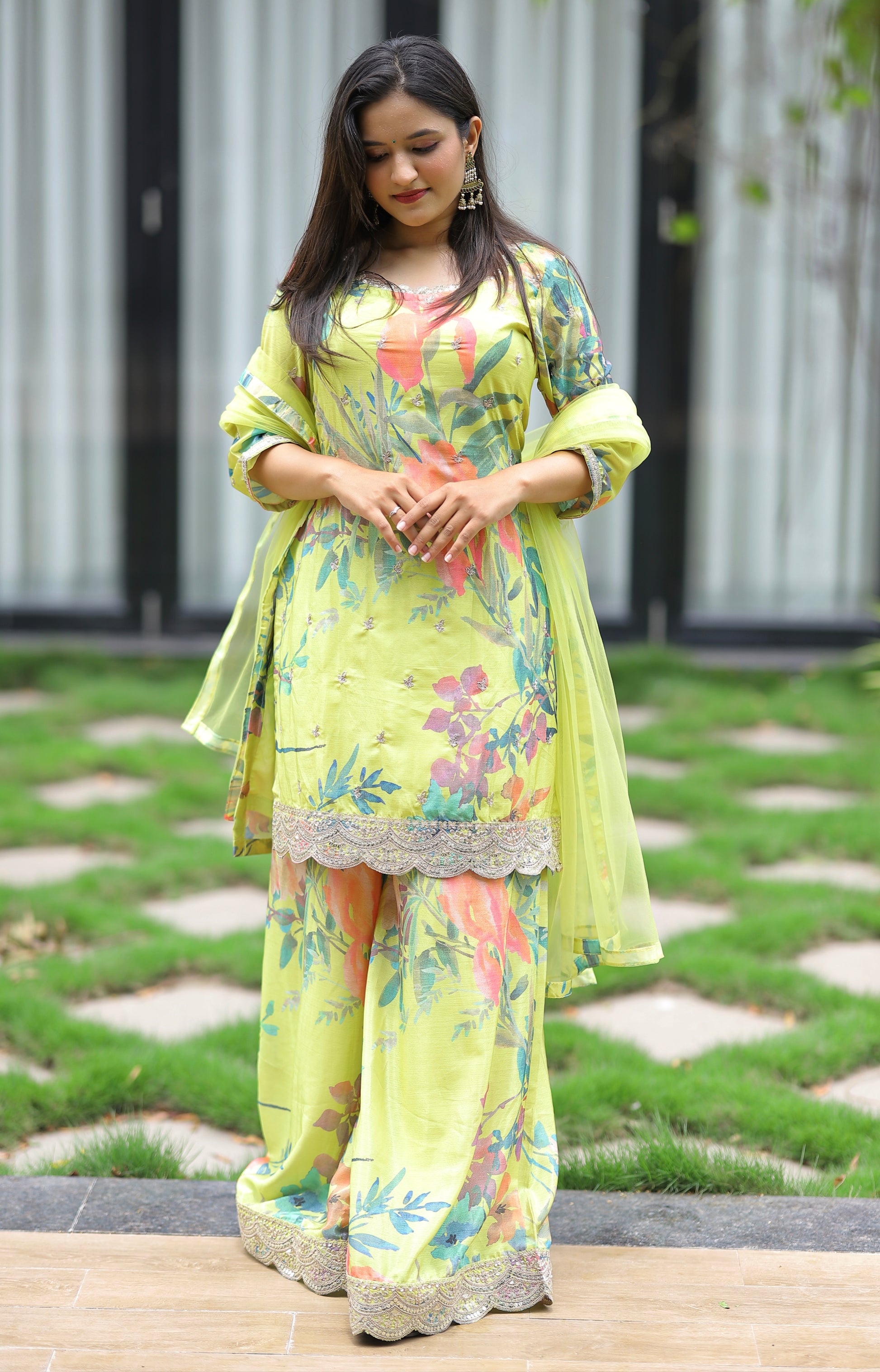 Elevate your wardrobe with the Paroot Plazo Set, expertly crafted for comfort and style. This set features a breathable fabric and a tailored fit that ensures ease of movement while maintaining a polished look. Ideal for both casual outings and semi-formal occasions, it combines versatility with contemporary design, making it a smart addition to any collection.