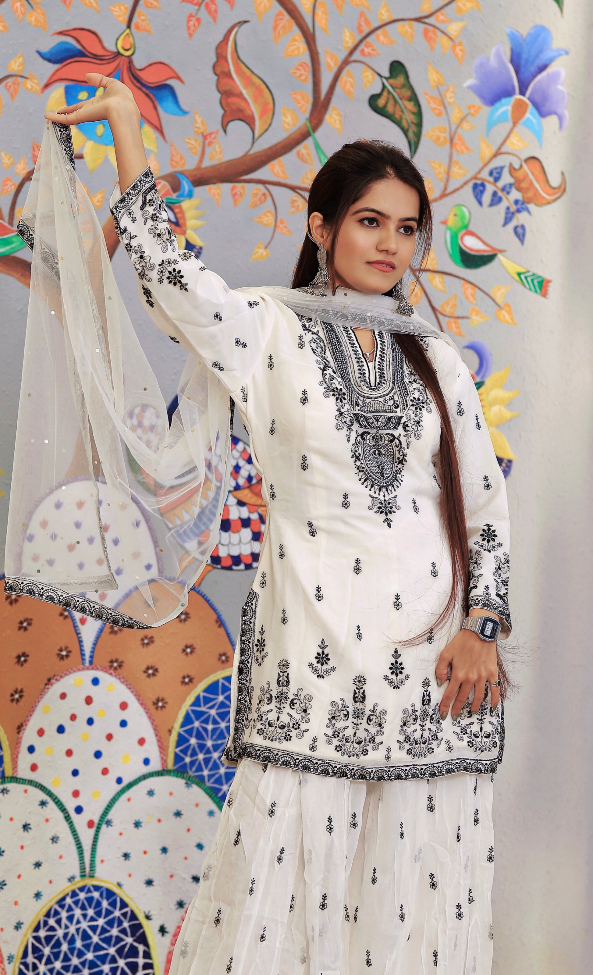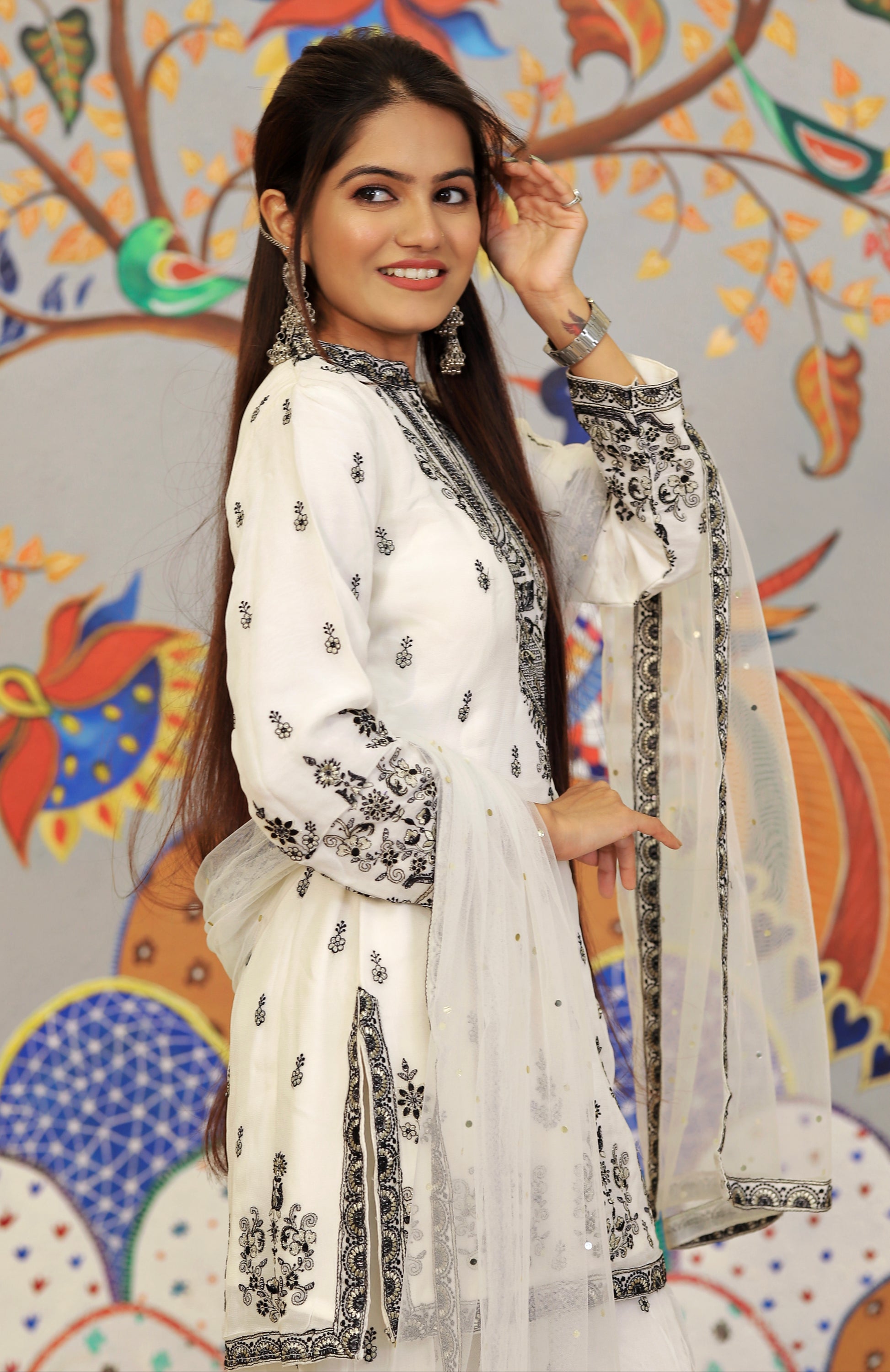 Elevate your wardrobe with this expertly crafted White Plazo Set, designed for both comfort and style. The breathable fabric ensures all-day ease, while the wide-legged plazo offers a flattering silhouette suitable for various occasions. Perfectly paired with a matching top or tunic, this set combines traditional elegance with modern versatility. Ideal for those seeking a refined yet relaxed look.